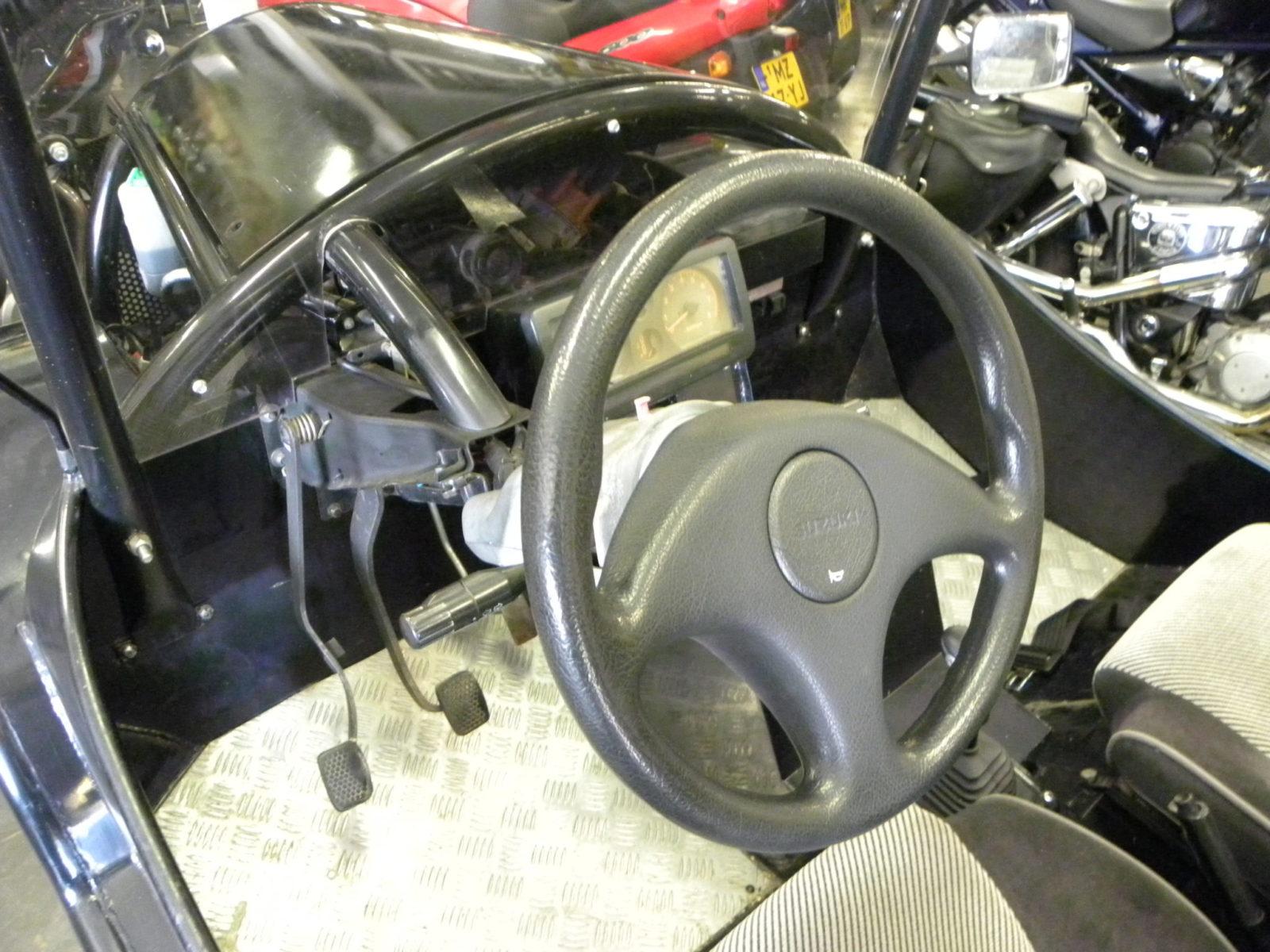 De auto bij Joost Woesthoff is volgens kenteken een Samurai. Hij kan ook officieel ge-APKaat worden. En dat komt doordat de 1/3 regeling hier helemaal opgeld doet: Alles is origineel Suzuki. Behalve het carrosserie. Dat kogelvrije koetswerk is door een enthousiaste plaatwerker – we zeggen nadrukkelijk geen ‘carrosserier’ – gemaakt en gelast. De Samurai heeft er een soort ‘Mad Max Light’ uitstraling door gekregen. Vertederend of verschrikkelijk? U mag het zeggen.