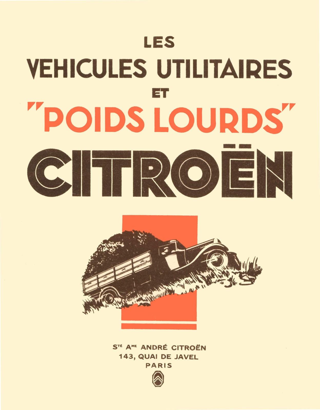 Na de oer-Citroën, het Type A, kwamen de B2 camionnette en de iets zwaardere B5. Er was keuze uit verschillende carrosserieën: gesloten, half- en geheel open bestelwagens. De C4 Voiture de Livraison was daar een voorbeeld van. De kleine C4 Fourgonette was een andere belangrijke loot aan de bedrijfswagenstam van het Citroën van weleer. Feitelijk was dit de hedendaagse koeriersauto avant la lettre, want hij werd regelmatig voor bezorgdiensten ingezet. Verder waren de typen 29 en 45 in de jaren dertig Citroëns’sterkhouders binnen de markt voor grotere en zwaardere transportvoertuigen.