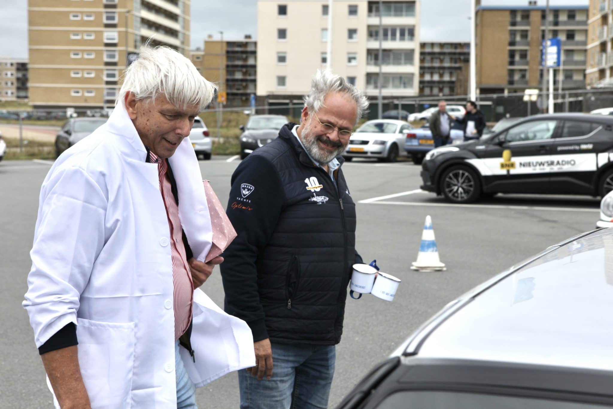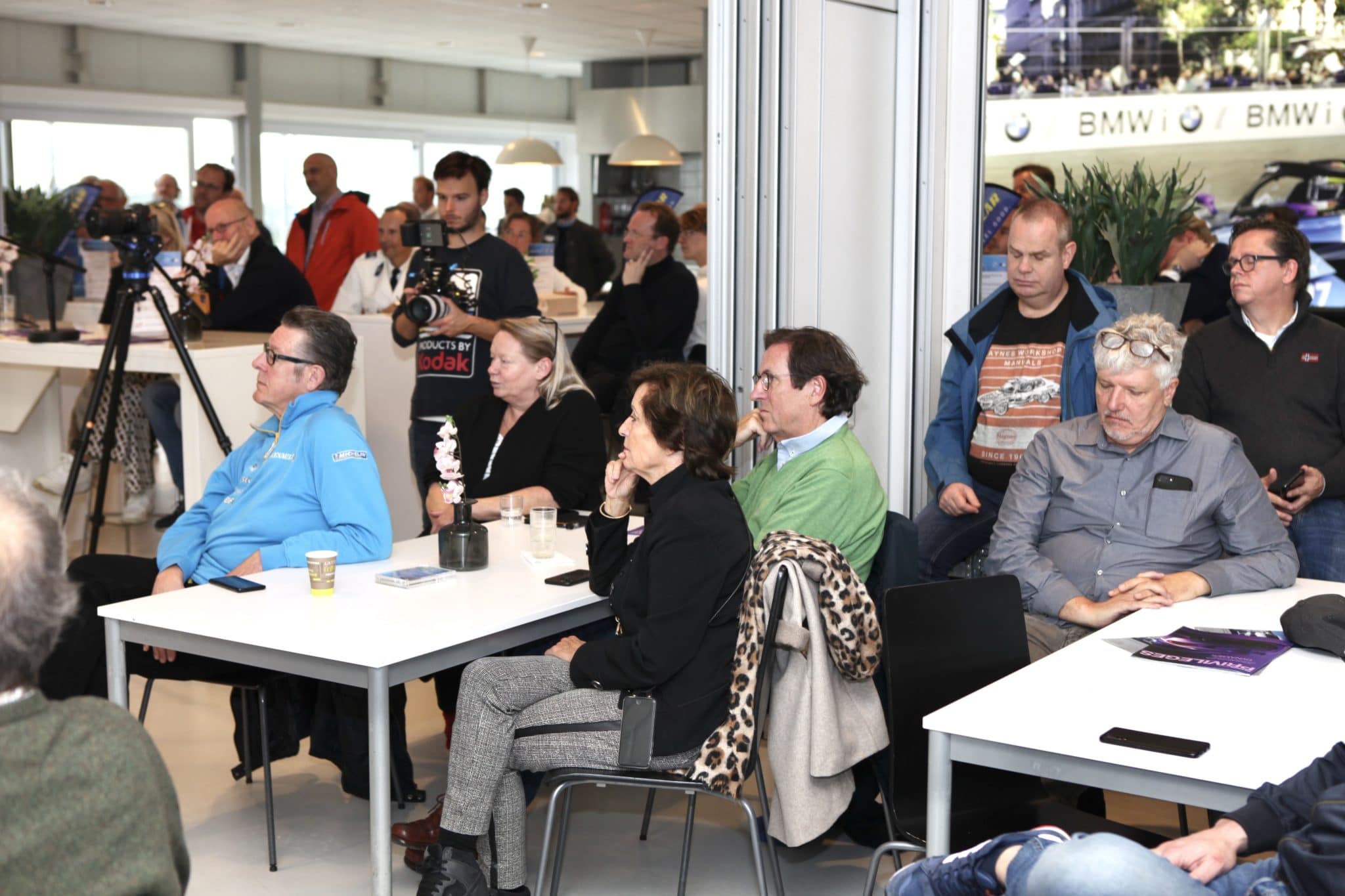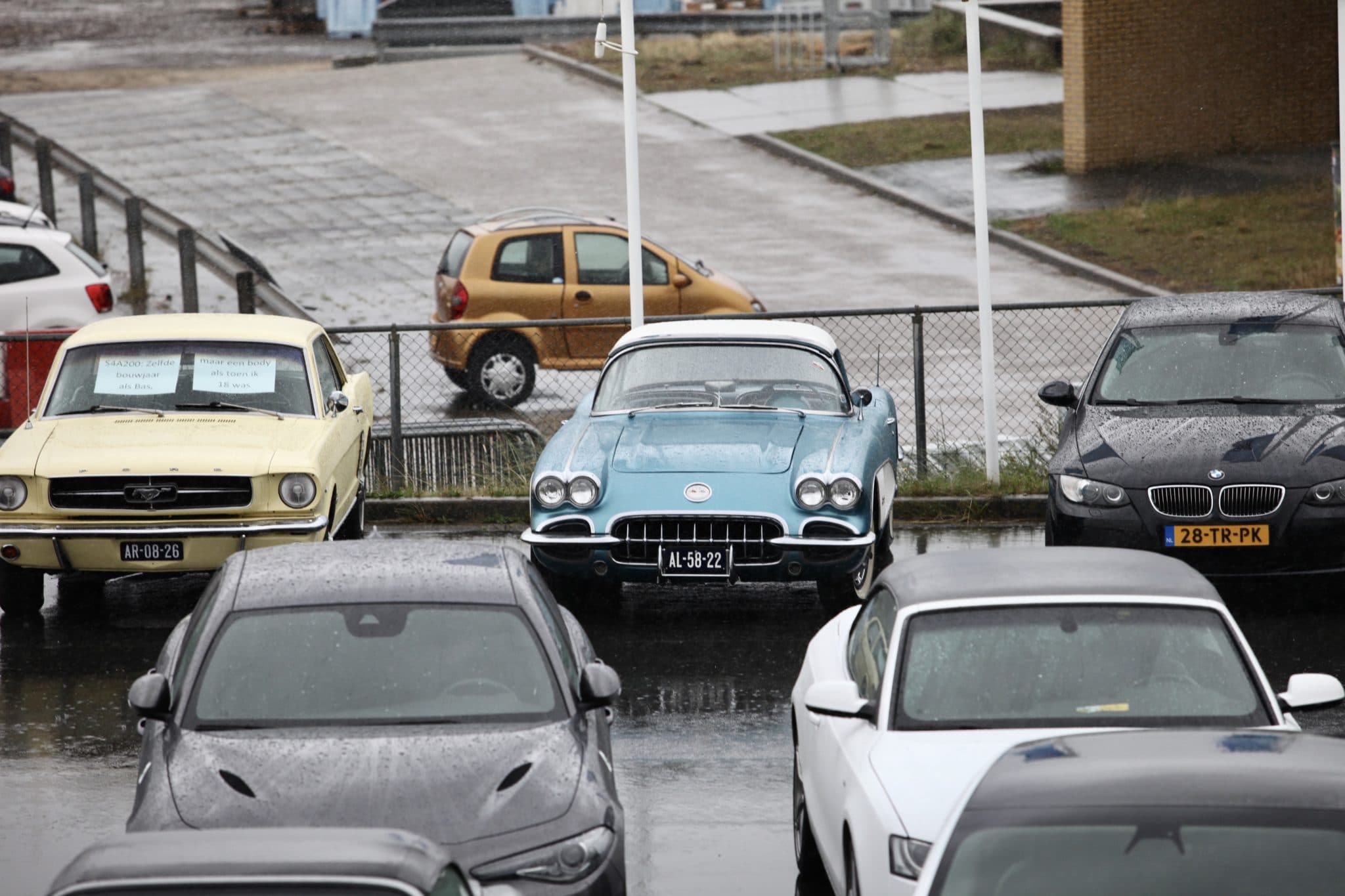 Op het parkeerterrein staat een mix van moderne auto’s en klassiekers. Ik pik er een paar uit.De courtesycar, het knuffeldier van de BNR Petrolheads, pronkt. Jorn Lucas heeft de auto naar Zandvoort gereden. Deze SAAB 9000 met 355.000 kilometer op de teller. Deze wordt door Brantsen en Van Werven in de watten gelegd, en als nieuw gemaakt. Een mooie en héél late Talbot-Simca 2 Litres wint later op de middag de prijs voor de meest bijzondere auto. Net even anders, een tikje onverwacht, passend bij het programma. Verder is er de immense Rolls Royce, waarmee Ronald Dubbelman de twee presentatoren bij het hoofdkantoor van BNR in Amsterdam oppikte. En een rijtje BMW 3-serie exemplaren wacht op het einde van de opname. Zij staan gereed voor diegenen die na de opname kortstondig en begeleid door een instructeur de kneepjes van sliptechniek mogen ervaren.