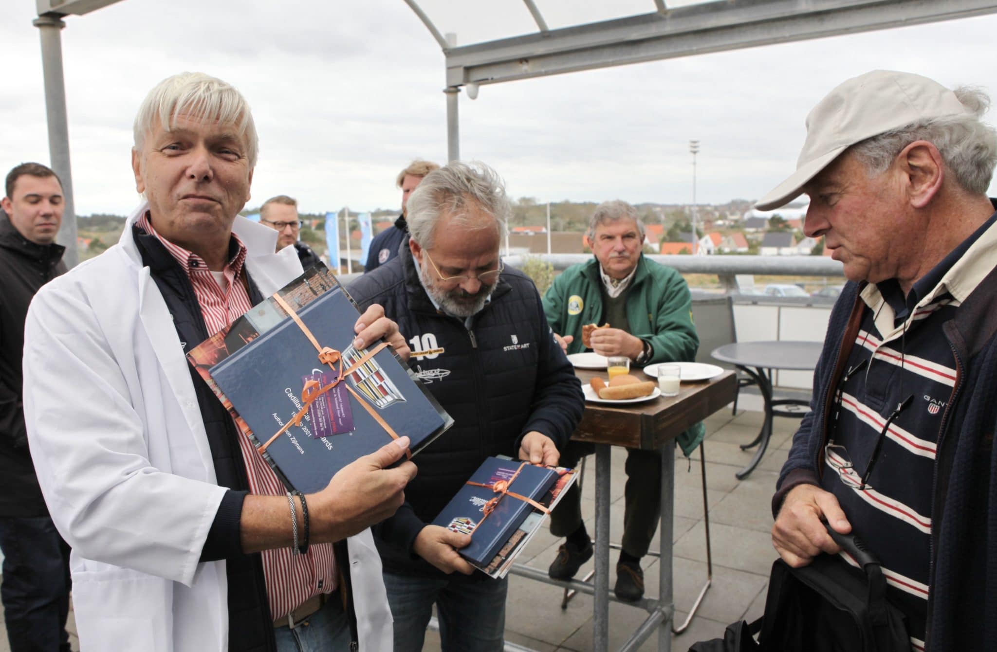 Er is Manetti koffie. OK biedt de gevulde koek en de appelflap aan. En binnen staat de lunch al klaar, mogelijk gemaakt door de KNAC. De presentatoren krijgen geschenken, zoals een mooi boek van de Cadillac Club Nederland. Het is een voorbode van wat komen gaat, en al is geweest. Want de Spijkstaalrace tussen de presentatoren is vanwege de weersvoorspellingen vervroegd. Terecht, en aan alles is gedacht. Via de sociale mediakanalen van BNR Petrolheads is een impressie van de race terug te zien. Na afloop van de opname doen de jubilarissen overigens nóg een rondje Spijkstaal. De open Red Rabbit scheert dwars door de regen. Alsnog. En ja: volwassen, gearriveerde kerels worden jongetjes als het om vier wielen gaat. Of het nu een BMW, een SAAB of een Spijkstaal is.
