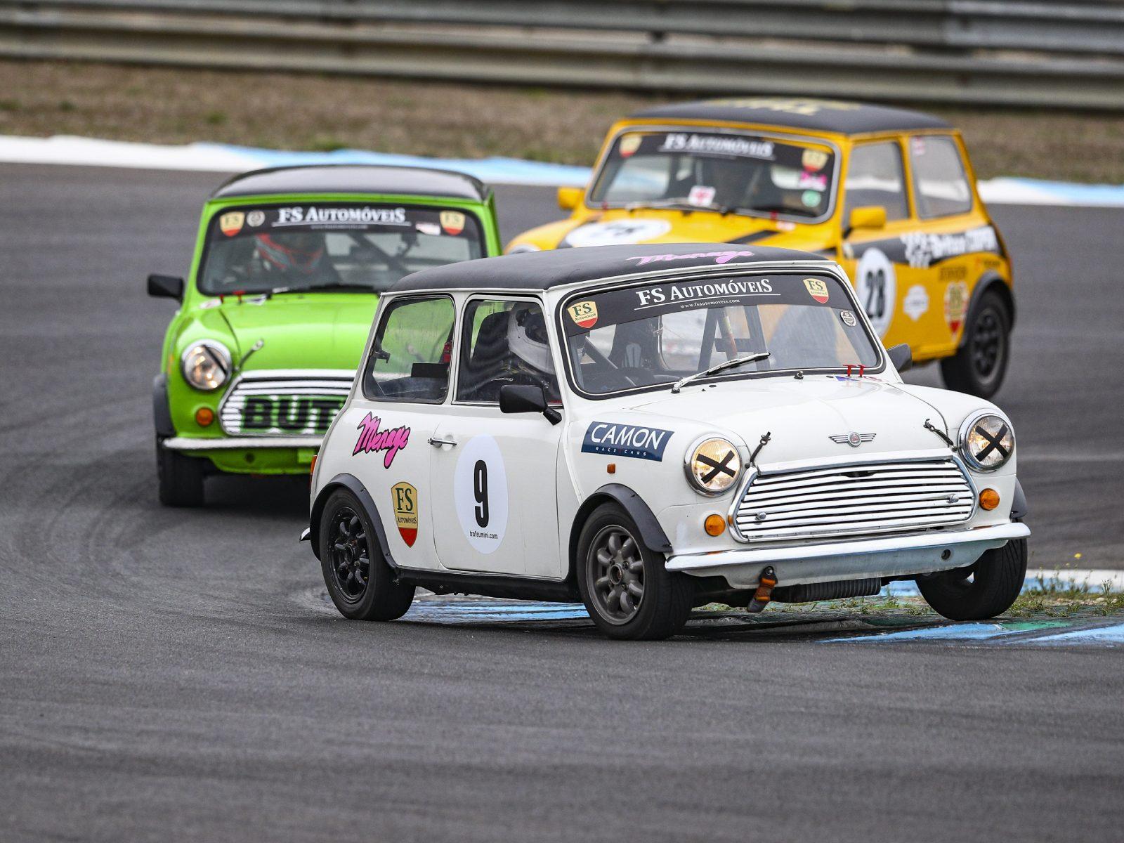 Natuurlijk: wie een verjaardag op het circuit viert moet zich ook rijdend vertonen. Dat gebeurde in Estoril, waar ook voor de Troféu Mini werd verreden. Op de één of andere manier was heel mooi zichtbaar, hoe simpel de wagentjes zich staande hielden op het circuit. In rechte lijn, in bochten: wie er een beetje kijk op had zag waaróm de Mini zo geliefd was in wedstrijdkringen. De handling was indrukwekkend, de coureurs moeten hoe dan ook een kartgevoel hebben ervaren in de kleine sympathieke Britse wagentjes. In die zin glorieerden de Mini’s ook op dat vlak, strak door de bocht, je kreeg heel veel aandrang om zélf een keer met een Coopertje rondjes te maken. Op welk circuit dan ook.