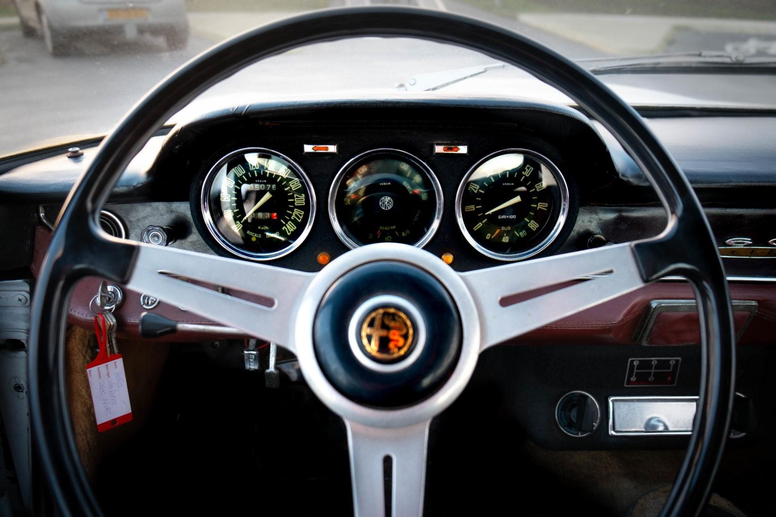 Ze weet dat dit aan vervanging toe is… Schaamt ze zich een beetje? Voor haar afgetrapte gympies? Ze oogt zo bescheiden maar is toch de moeder van de legendarische Iso Rivolta, de Gordon Keeble en de BMW 3200 CS. Ze leende hen haar blueprint. Voor het geld, waarschijnlijk. Maar ze verkocht niet haar ziel. Niet haar geheimen. Ze hielt een stukje van zichzelf, haar trots. Ze zou nu het liefste willen dat we gewoon instappen. Haar heerlijke zes cilinder startten zodat ze eindelijk even haar keel kan schrapen en mannen kan geven wat ze willen. Want wat is ze daar goed in. Haar onzekerheid verdwijnt als we er met een brutale schreeuw met haar vandoor gaan. Haar kracht, sportiviteit en souplesse is haar geheim dat weinige van ons ooit in het echt zullen ontdekken. Ze is verslaafd aan de aandacht en know’s how to please. Ze is gezegend met een gouden stem van Sopraan tot Contra-Alt. Met 145 PK, 2,584 cc en driedubbele carburateurs gaat de Alfa Romeo 2600 Sprint tot wel 200 kilometer per uur.