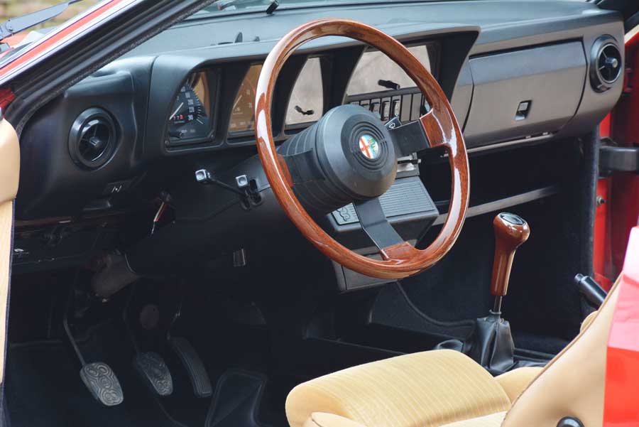 Met een aantal praktische tekortkomingen schrikt de Alfa Romeo GTVÂ de grote massa af, maar bezielde asfaltverslaafden brengt hij totaal in verrukking. Heb je stijlgevoel? Probeer dan maar eens koel te blijven bij de aanblik van de uitnodigende sportstoelen in een beige krijtstreepdessin, bijzonder modieus in de jaren tachtig. Ze grijpen je lekker bij je lurven. Maken je klaar voor de aanval. Terwijl je vergenoegd een blik over de rijkdom aan meters laat glijden, verdeeld over twee secties. Pure nostalgie ademt het hout van het dikke sportstuur en de pook. Een begeerlijke uitzondering in het plastictijdperk dat tot op de dag van vandaag voortduurt.