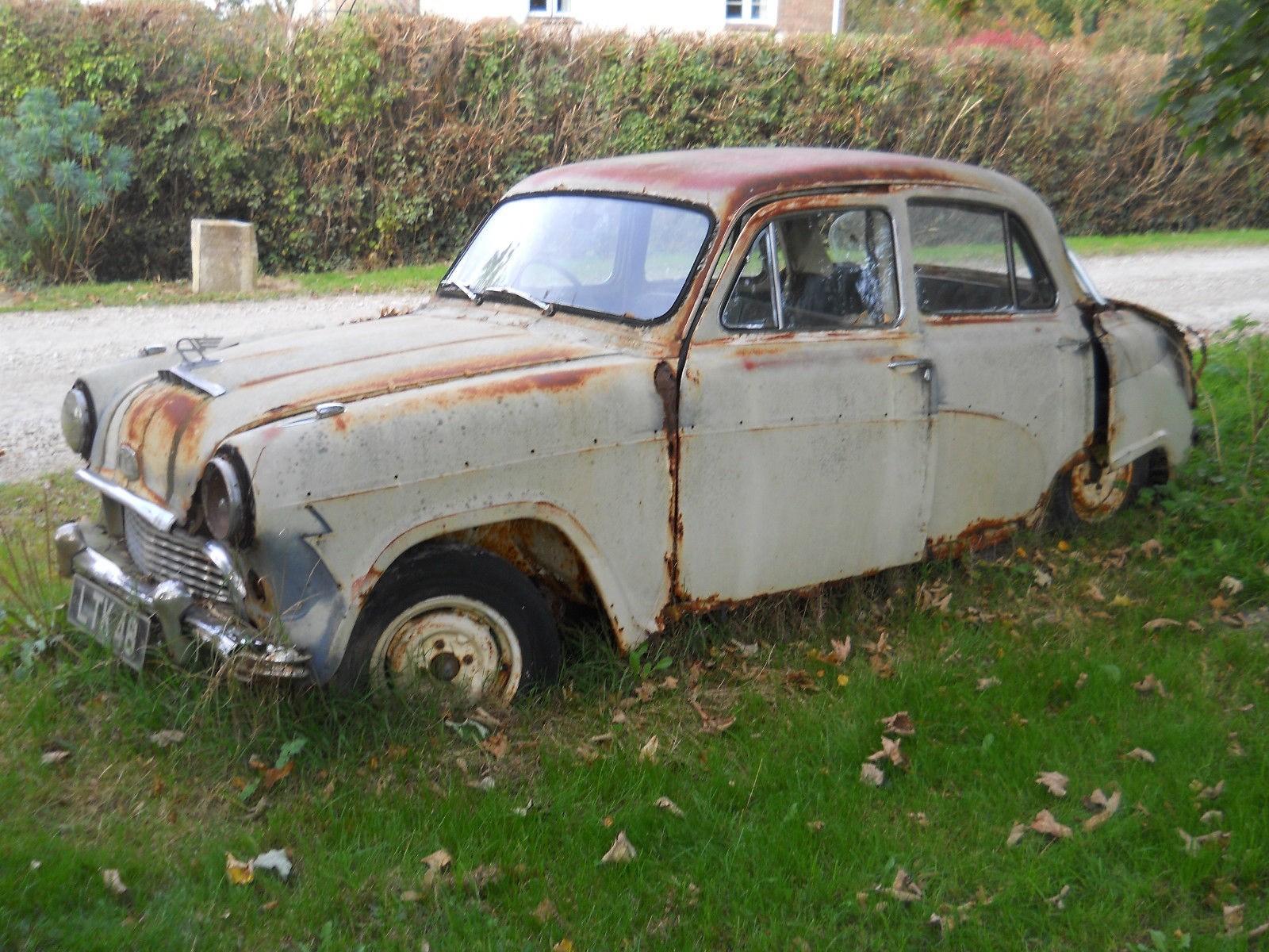 Sperend door het Britse landschap, op een zogenaamde ‘gravel road’ nabij het Britse Wareham, Graafschap Dorset, werd de Austin A55 Cambridge ontdekt. Zo te zien een object daterend van rond 1957? Een toevallige passant-op-leeftijd die zijn hond aan het uitlaten was, wist te melden dat deze Cambridge er al iets langer dan een paar dagen geparkeerd stond. Hij vond het wel mooi om zo’n auto langzaam maar zeker te zien vergaan. Ashes to ashes, dust to dust. En daar is geen woord Frans bij. Zorgvuldige inspectie leerde dat deze klassieker als één geheel verplaatsen, geen optie was. Zelden, eigenlijk nog nooit een auto gezien die zó verrot was… De achterruit bijvoorbeeld, had zich kunnen bevrijden van het raamrubber en de koets, de achteras was ‘vrijgemaakt’ van de koets. Volgens de passant moest de auto daar blijven staan, want hij hoorde bij het landschap. Een standbeeld is duurder?!