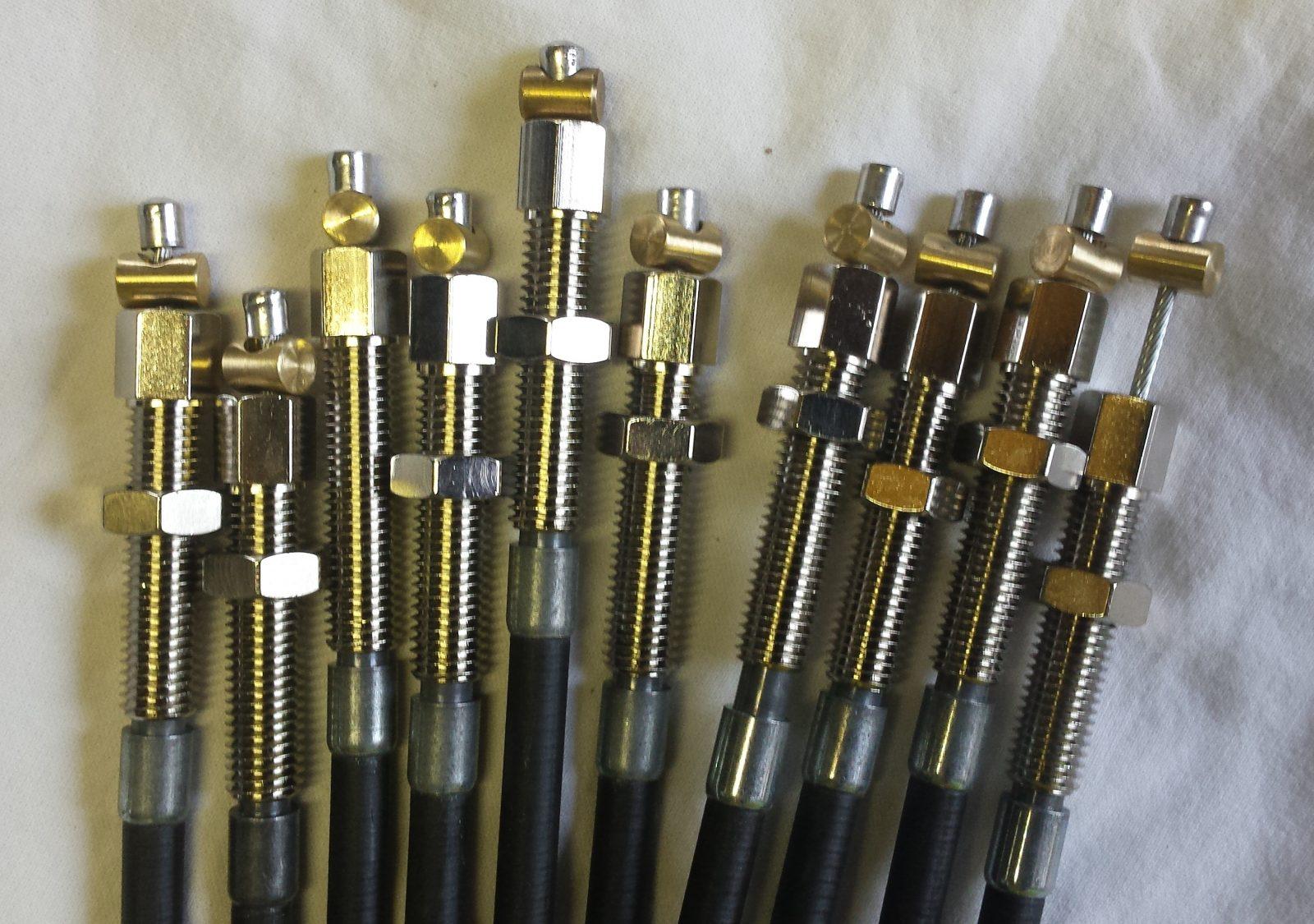 Het maken van bedieningskabels is een ambachtelijke bezigheid. Het is geen rocket science, maar er zijn nog maar bar weinig mensen die het vak beheersen. Het vinden van de basismaterialen alleen al kan moeilijk zijn. Want binnen- en buitenkabels zijn er in de loop der decennia in veel verschijningsvormen geweest. Om nog maar niet te spreken over allerlei specifieke draadeinden en wielmoertjes. Bij Visser-Tijhof worden die delen indien niet standaard verkrijgbaar – en voor de mensen die de weg weten is er nog best veel te vinden – in eigen huis gedraaid, gefraised, geboord en gekarteld.