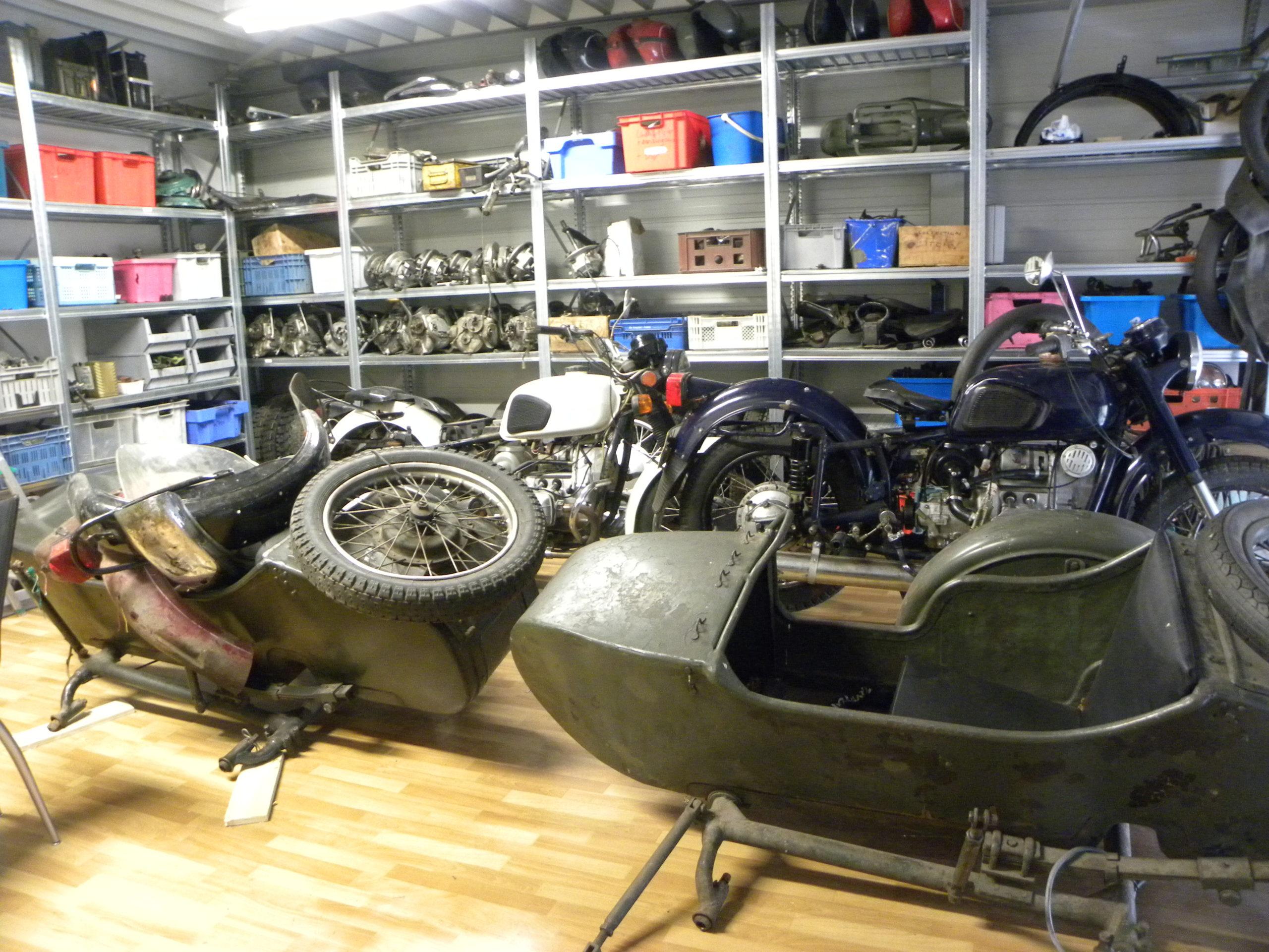 “Jij en je maat horen tot nog maar de paar mensen die ‘knooien’.” Vroeger verkocht ik veel gebruikte onderdelen. Maar nu je bij Jan gewoon nieuwe onderdelen kunt kopen, kopen ook Ural en Dnepr rijders meestal gewoon nieuw. Ik heb nog van alles liggen, maar er zit weinig beweging in de schappen. En als er eens iemand voor komt, dan is het een ouderwetse Ural of Dnepr rijder die nog steeds denkt dat je een motorblok voor 50 euro hebt. Die tijd is echt voorbij.”