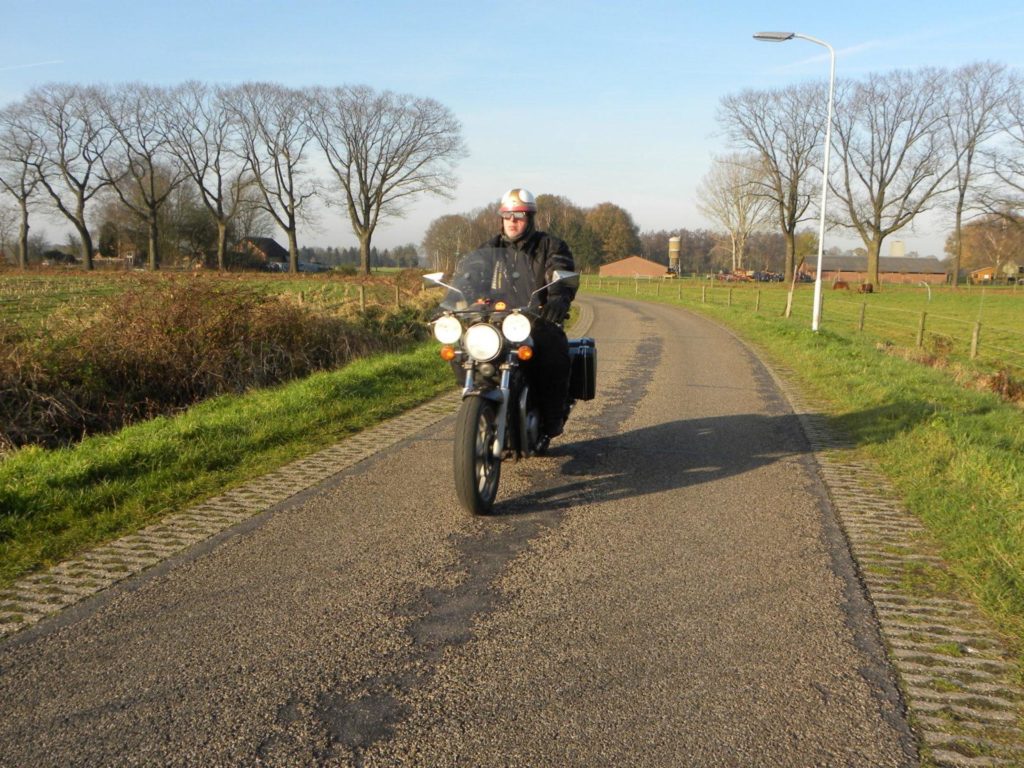 Toch heb ik enorm veel baat gehad van die rij-opleiding. Ik heb er leren ‘ breed rijden ‘. Rijden met de linker wielen op de as van de weg. Ook op de smalste wegen je asfalt claimen. Dat was het idee. En dat die insteek soms een gerafelde flank van de tegenliggende partij opleverde? Dat moesten ze maar als leergeld zien. Op de motor rijd ik nog steeds breed. En ondanks het feit dat de psychologische impact van een frontaal naderende Dikke Daf serieus groter is dan die van een klassieke motorrijder op toertocht: Het werkt.