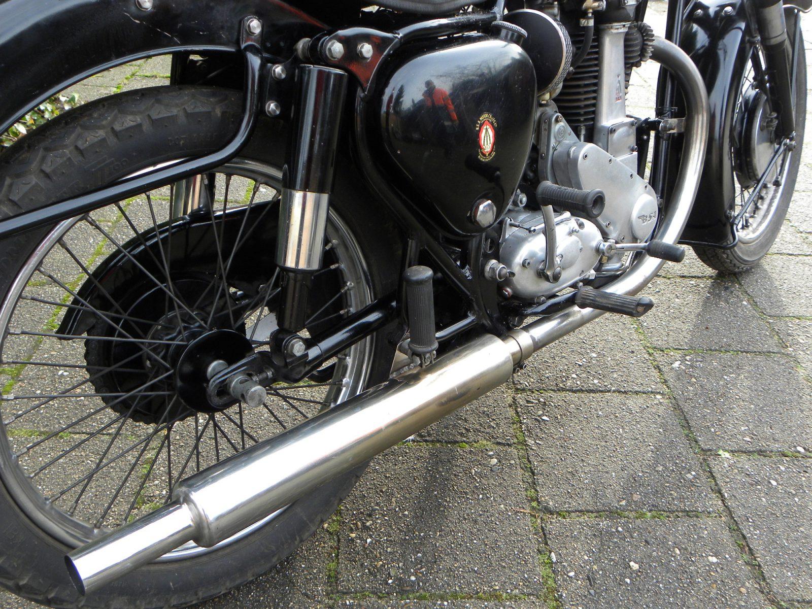 Met zijn separate versnellingsbak achter het motorblok was ook deze BSA een voorbeeld van klassieke motorbouw. En 500 cc was indertijd een heel indrukwekkende cilinderinhoud. De BSA is een grote, §bijna statige motorfiets. Een serieuze toermachine of zijspantrekker. Een motor voor serieuze mensen zoals veeartsen en ambachtelijke notabelen.