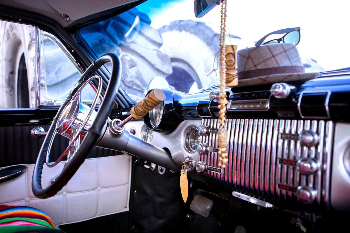 Auto uit elkaar en labelen van de onderdelen. Daar heb je nog niet meteen een technisch inzicht voor nodig. Erik’s vriend – Andre Hulsink – was gelukkig de reddende engel toen die kijk wel noodzakelijk was. Want zijn technische kennis was voldoende om van deze Buick Eight Super weer iets moois te maken. De motor ging eruit en werd getransporteerd naar het huis van Andre. Zuigers, nokkenas en tuimelaar werden vervangen. Ook de doorgerotte vriesstoppen werden vervangen en uiteindelijk net zoals de meeste andere onderdelen zoals waterpomp, motorsteun, keringen, pakkingsets, rubbers gewoon in Nederland gevonden. Erik gaat voor origineel, maar geeft toe dat hij soms een moderne oplossing vindt. Zo is de Bosch-dynamo afkomstig uit een moderne Golf. “Want oude dynamo’s hebben niet voldoende power. Een beetje goede rock & roll muziek mag dan ook zeker niet ontbreken. Daarom is er een moderne radio/cd speler inclusief versterker ingebouwd met twee maal 100 watt achter en twee maal 80 watt boxen voorin.” Dat klinkt leuk, Erik.