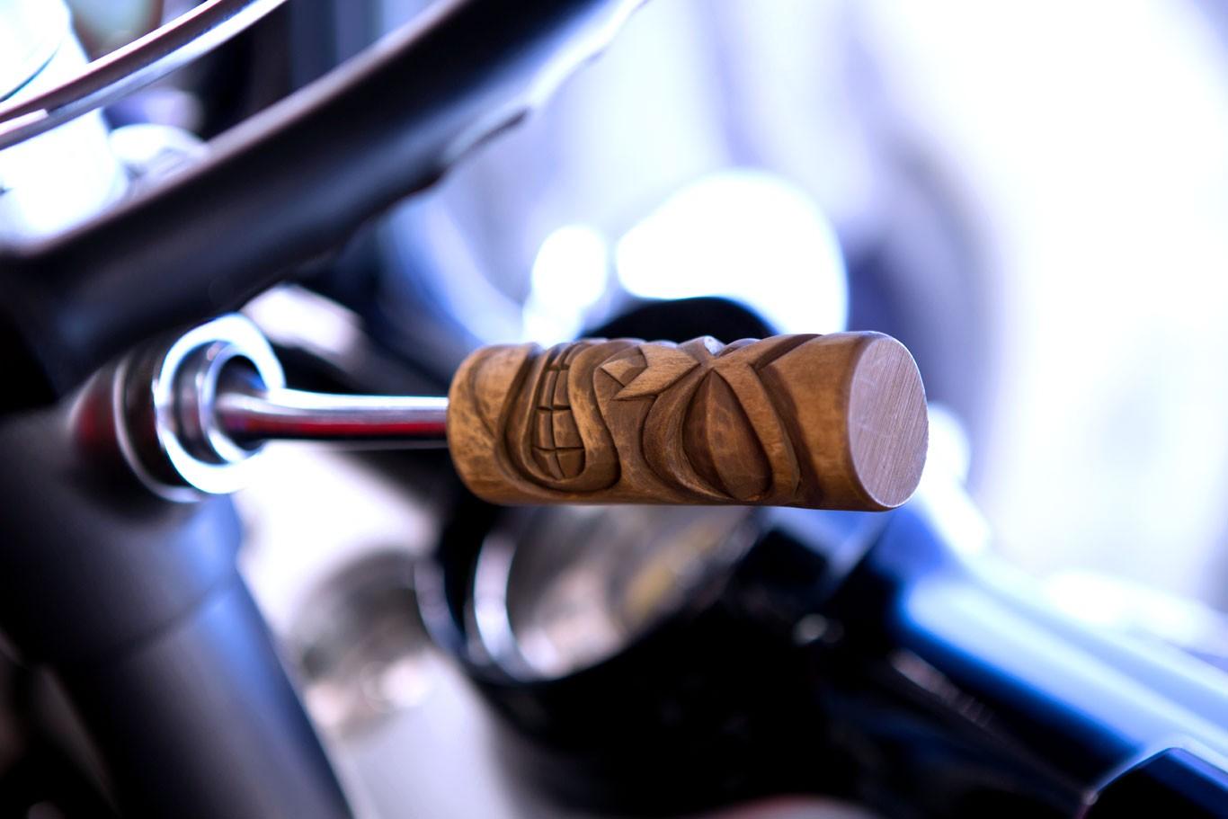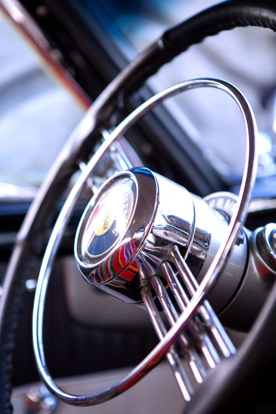Het is aannemelijk dat in Amerika de auto is versleept. En dat is niet bevorderlijk geweest voor de automatische versnellingsbak. Aan een volledige revisie van de Dynaflow-bak was dan ook niet te ontkomen. Daar bleef het niet bij. Erik kan moeiteloos een opsomming maken van de bezigheden in zijn garage. “Een compleet nieuwe RVS-uitlaat met nieuwe ophanging is gemonteerd, remschoenen zijn vervangen, remcilinders zijn voorzien van nieuwe stofhoesjes en remslangen zijn ook meteen vernieuwd.” Het dashboard – hoe is het mogelijk – was nog volledig compleet en zonder beschadigingen. Dat scheelt een hoop zoekwerk. Een aantal klokken heeft Erik ter reparatie weggebracht. De belangrijke kilometerteller is echter ook nu nog steeds een struikelblok. Zo is de kilometerteller nog niet aangesloten. “De veer in de kabel schuurt en ratelt. Het is een originele kabel, dus daar kan het niet aan liggen. Ik heb geen idee waar dat geluid door wordt veroorzaakt. Met hele dunne klok olie is het door gesmeerd, echter blijft het lawaai maken. Dus als een lezer een de tip heeft”, zegt Erik uitnodigend. Grappig zijn de voorlopers van de huidige parkeersensoren. Deze curb-feelers steken als kleine tentakels uit de wielkasten. Raak je daarmee bijvoorbeeld een stoeprand, dan functioneert de wielkast meteen een klankkast.