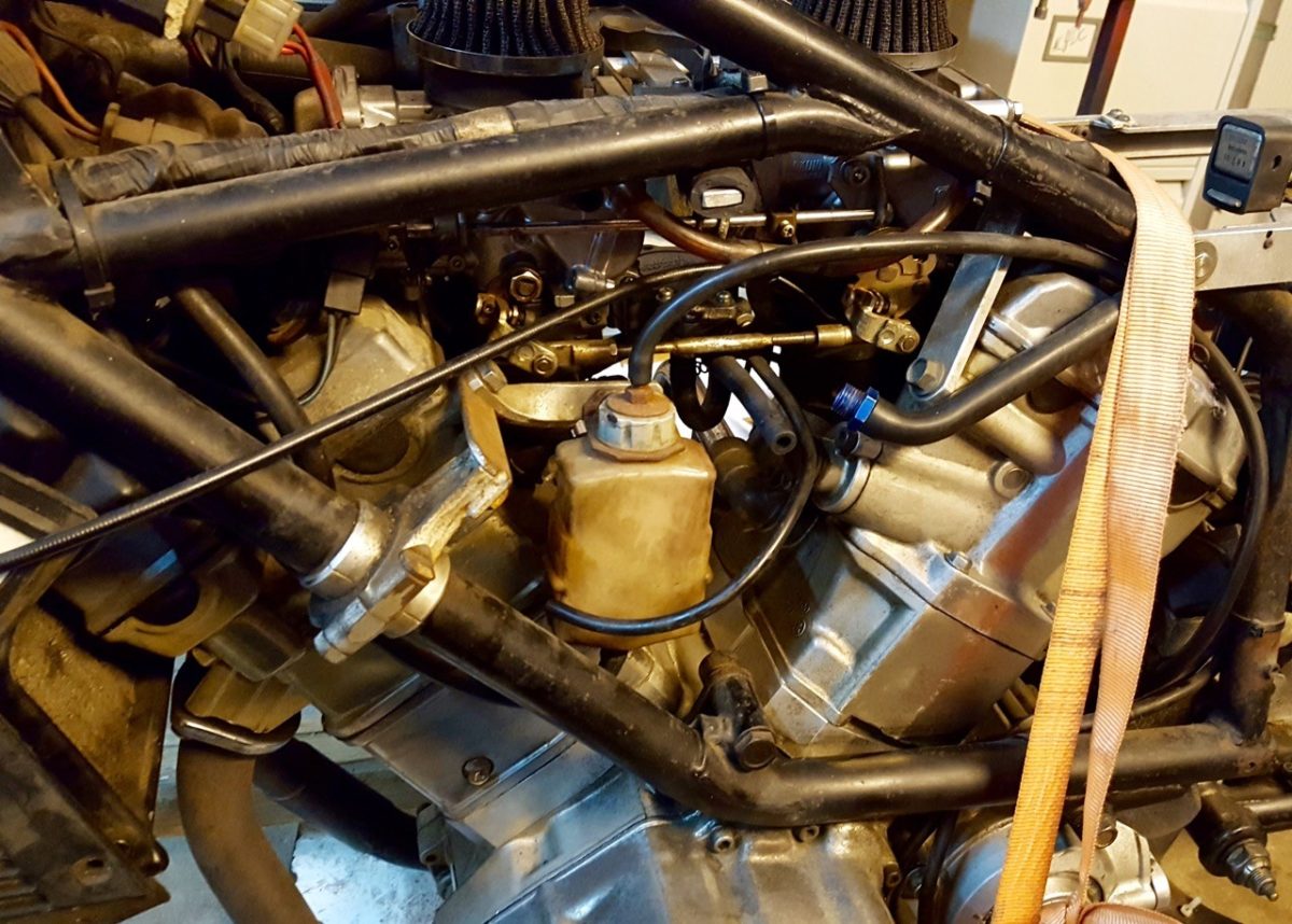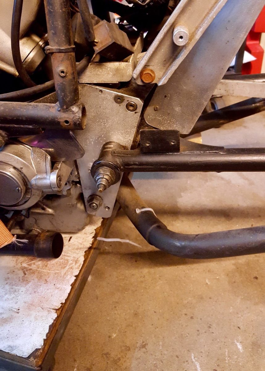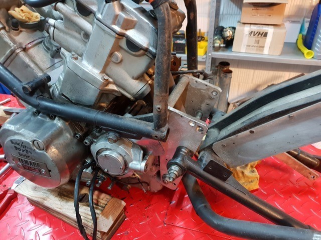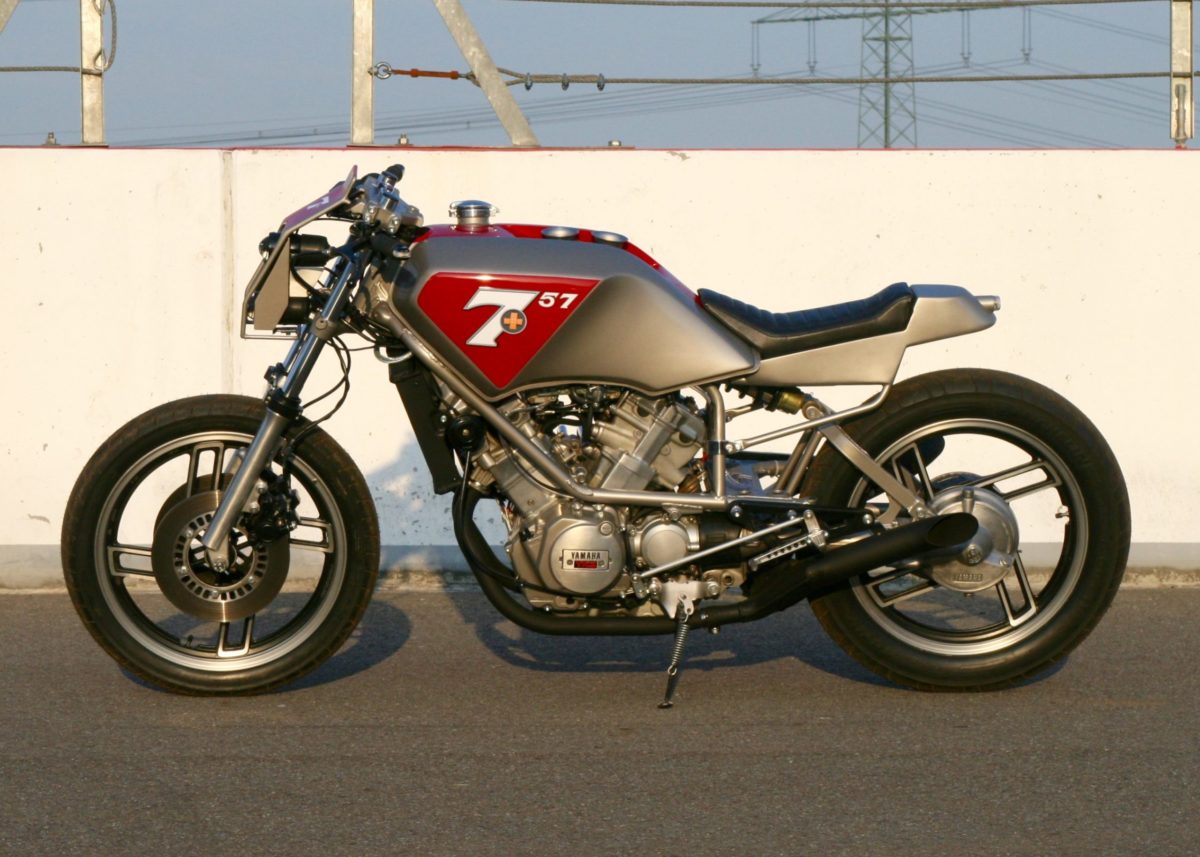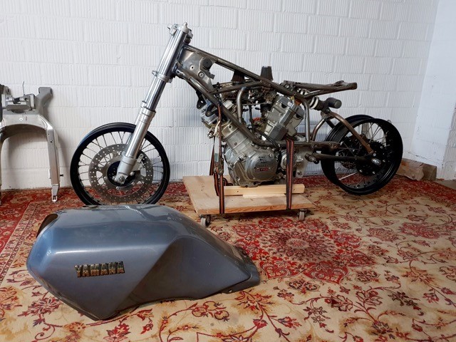 Guido Oleck kocht de machine omdat hij er al eentje had en en hij deze machine, of wat er van over was, gewoon lief vond. De vorige eigenaar had hem 20 jaar geleden gekocht omdat hij de Borraniwielen en de voorvork wilde hebben. Het frame was verslepen en de achtervork was weer zo’n bewijs dat Cees Fick niet zo van de framebouw was. Guido heeft daarom maar weer een standaard frame gebruikt. Aan de voorkant heeft hij er de vork van een CBR 900 Fireblade in gestoken en hij heeft 17” Supermoto velgen van Behr gemonteerd. De balansas is verwijderd en er is een andere krukas met een langere slag gemonteerd. De Yamaha moet nu een cilinderinhoud van 844 cc hebben.