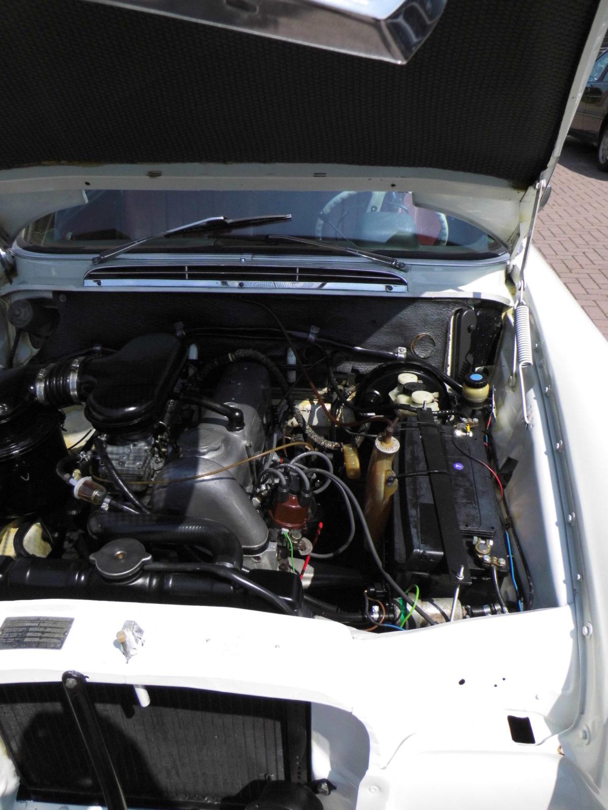 motor: viercilinder lijn motor, vijfmaal gelagerde krukas (van af 1965), cilinderinhoud 1.988 cc. Boring x slag: 87 x 83,6 mm, compressie: 9 : 1, carburatie: Solex 38PDSJ vermogen 104 pk (bij 1.275 kg, dus verwacht geen wonderen).