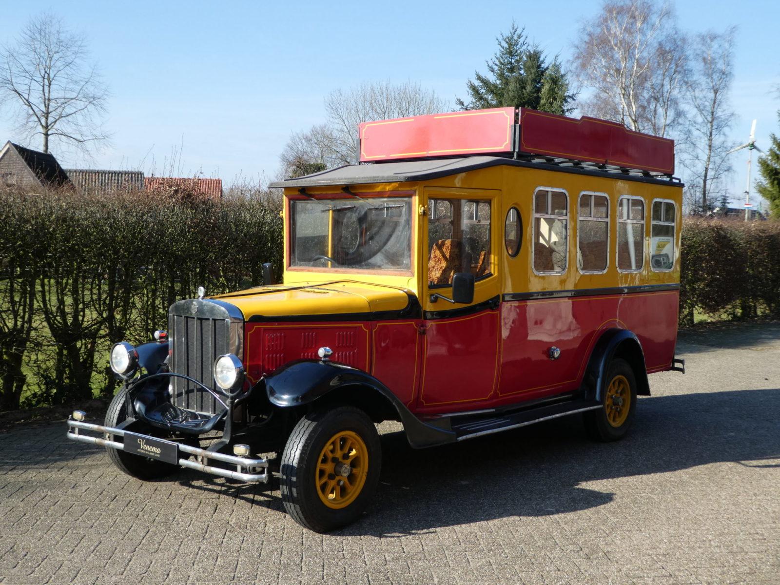 En wat er dus gemaakt worden, dat zijn feitelijk promotie voertuigen. ‘Marketing tools’ om een onuitwisbare indruk op klanten en dergelijke te maken. Er werd bijvoorbeeld een exemplaar geleverd aan Disney World Japan. We hadden er hier in de regio al eentje van een bloemenzaak zien rijden, maar bij Venema Classics liet een blije Albert Venema zijn nieuwste aanwinst zien: Een 1985’er Asquith Mascot 9 zits bus op het onderstel van een Ford Transit. De auto komt uit de voormalige collectie van Het Autotron Rosmalen heeft de hondstrouwe Ford 2 liter 77 pk viercilinder benzinemotor en een vierbak met overdrive.