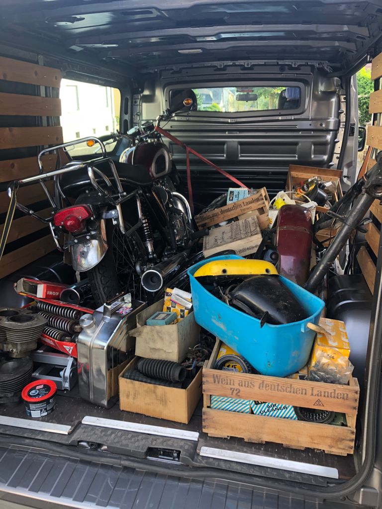 Zo raakten een vader en zoon na het tanken van die spotgoedkope Duitse benzine aan de praat met een dorpeling. En die dorpeling kende weer een andere dorpeling /V, een weduwe. Voor je nu denkt dat we aankoersen op koppelarij en een romance: de weduwe was getrouwd geweest met een motorrijder. En – hoe grappig – wijlen die motorrijder had ook een Triumph gehad. Locatie en geschatte leeftijden in acht genomen waren vader en zoon mild geïnteresseerd. Senior schatte in dat het om een Duitse Triumph van TWN, Triumpf Werke Neurenburg zou zijn, een tweetakt uit de jaren vijftig of zo.