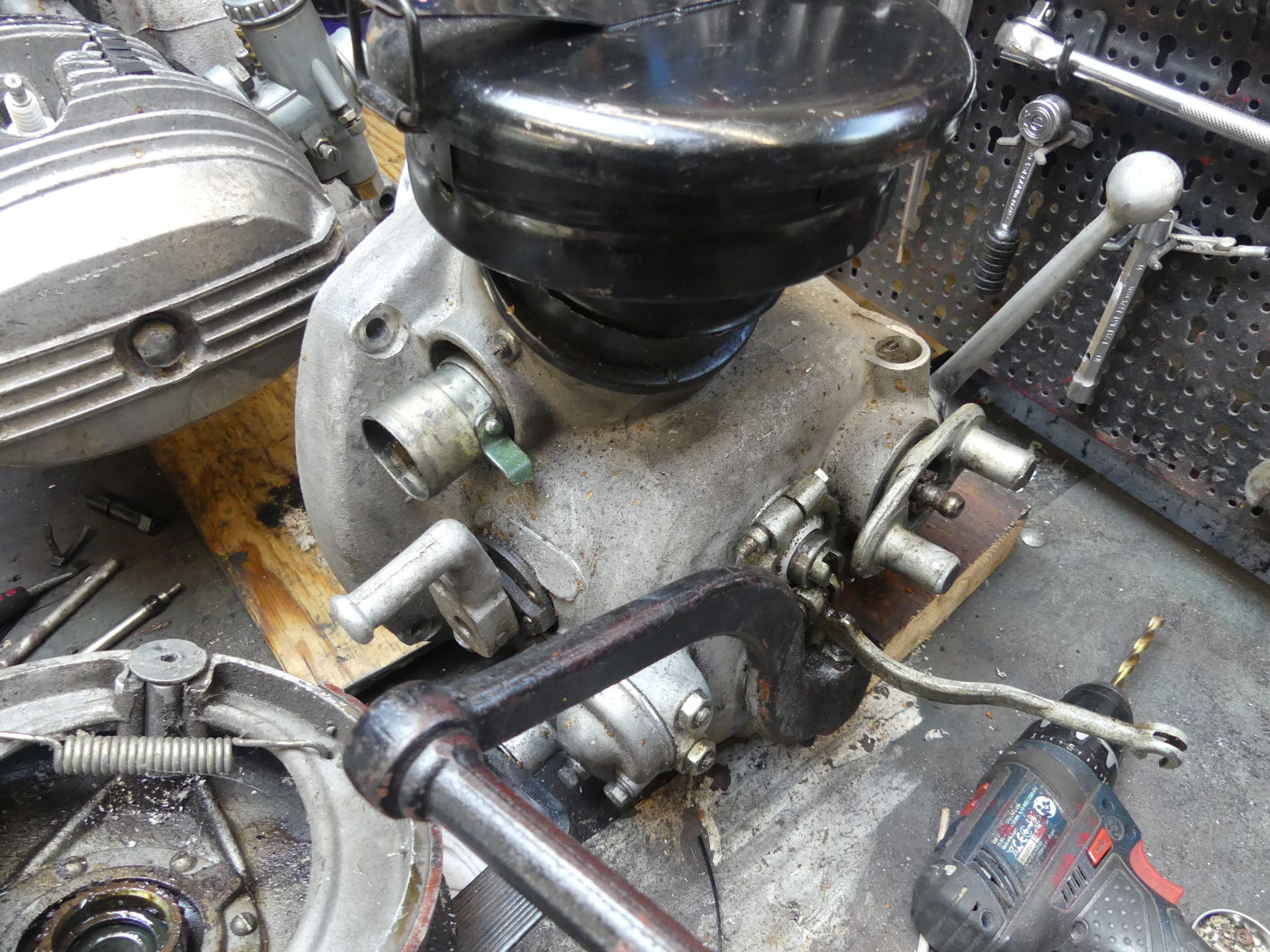 Het resultaat is sneu, maar er zijn er in de VR heel veel van gemaakt voor politie, leger en overheden. Iets van 32 pk uit 750 cc was ook in 1987 niet wereldschokkend meer, zeker niet voor een zijspantrekker. Alle gietwerk aan blok, bak en naven is grof. Alleen de ontsteking is listig op de automanier gedaan. De graden aan voorontsteking zijn het enige scherpe detail. Het laswerk aan het frame is om te janken. Het achterspatbord is zwaarder en lomper dan de deuren van de Grevelingendam. Maar het ding is verregaand compleet, het blok is los en heeft compressie. Om het verhaal rond te krijgen ga ik Ural onderdelen shoppen bij Richard in Genemuiden. En bij Beck in Wijhe mag ik in de rommelbakken kijken naar de BMW-‘identieke’ delen.