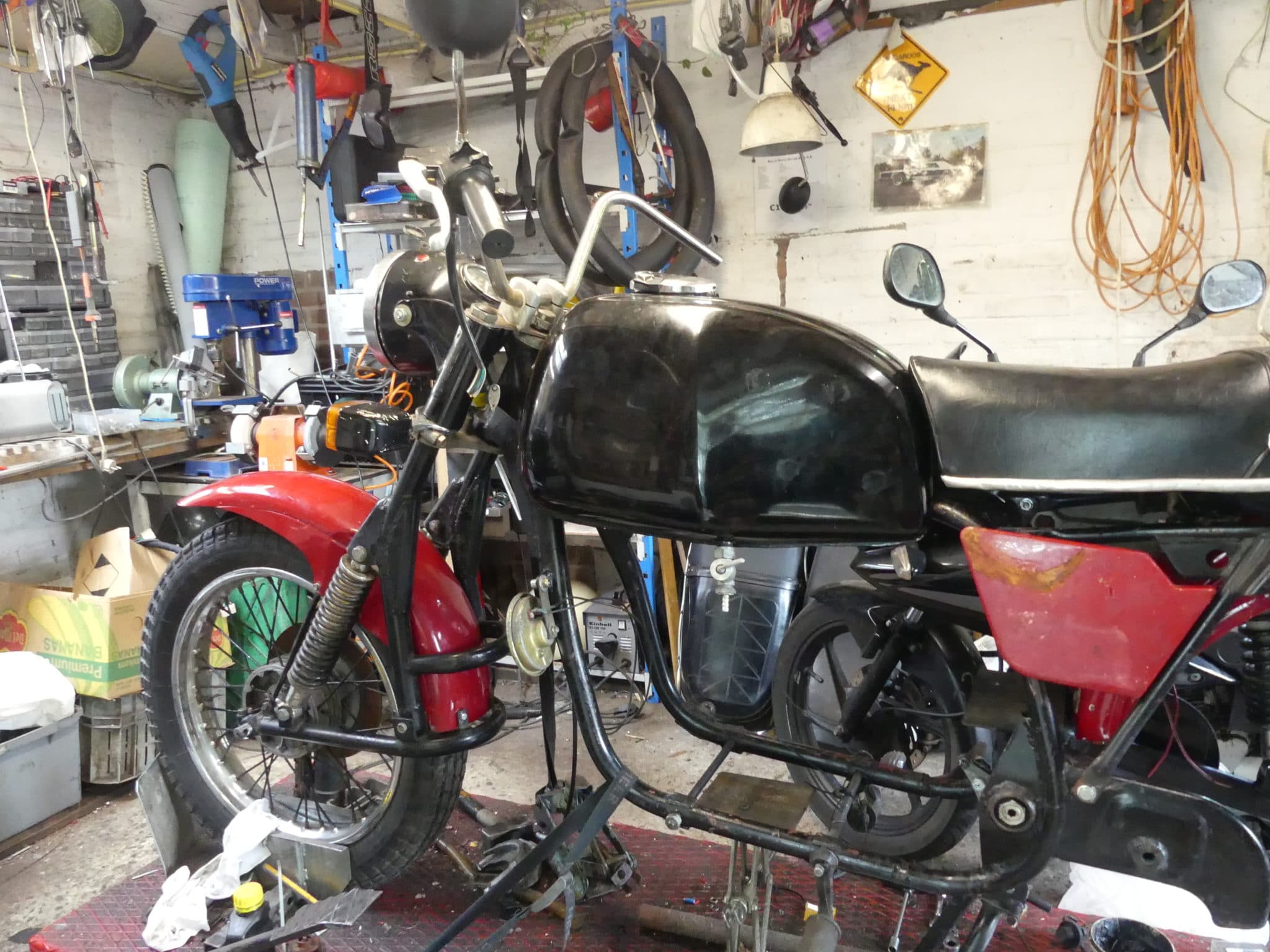 Intussen maakten ze in de Volksrepubliek China ook motorfietsen waarover gelachen werd. Want hoe sneu is het dat je kopieën van de kopieën van de vooroorlogse BMW R71 gaat maken? Dat deden de Chinezen onder het merk Chang Jiang of Xiang Jiang en nog een handvol andere merknamen voor hetzelfde ding. Ze maakten er miljoenen van. De volgende grote stap voorwaarts begon met een eigen kopie van een andere BMW. En zo’n konijn staat er nu bij mij in de garage. Ik kocht hem – inclusief ‘Duitse Brief’ – voor 500 euro als gedeeltelijk losjes gemonteerd dozenproject.