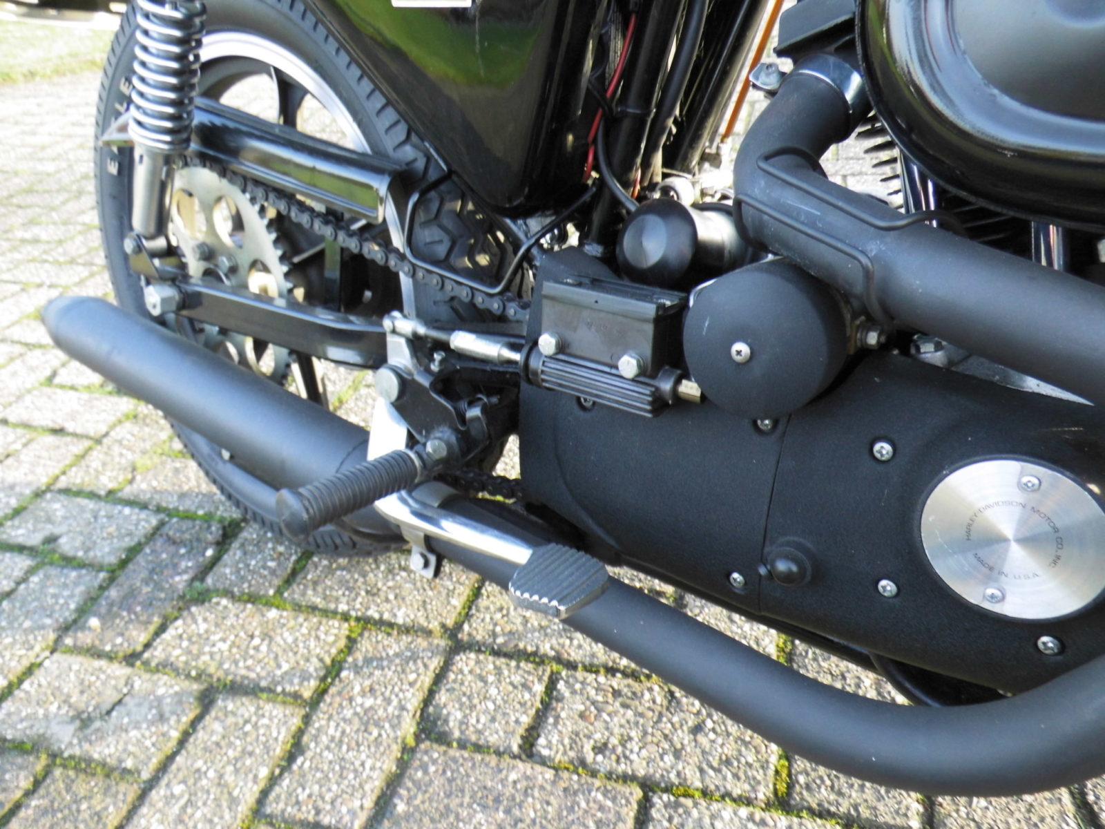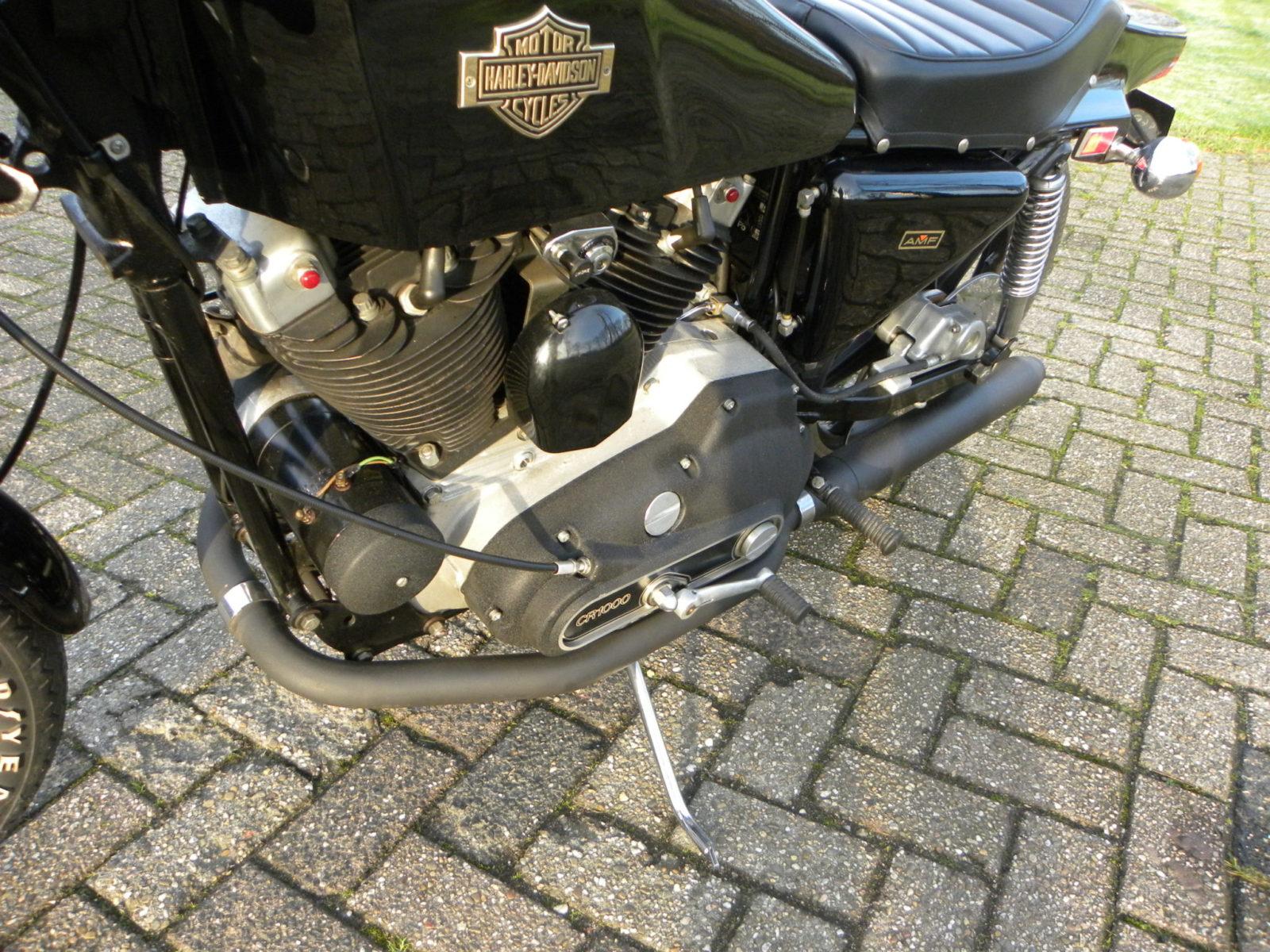 Gebaseerd op de Harley-Davidson Sportster, had de Harley XLCR Cafe Racer een nieuw frame dat wat leunde op dat van Harleys XR750 racers, dat minuscule kuipje, de markant vorm gegeven vier-gallon gastank, en een glasvezel kontje. Voetsteunen, rem- en schakelpedaal waren in ‘standje sportief’ gezet en dankzij het lage stuur hing de piloot dynamisch voorover. De Harley XLCR ’s waren ‘in elke kleur, zolang het maar zwart was” Zelfs het motorblok was in zwarte krimp (kreukel)lak gehuld.