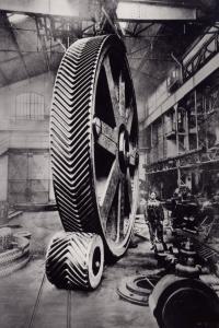 “Hij bedenkt de tandwielen met visgraat vertanding die op deze wijze grotere krachten kunnen overbrengen en minder slijtage veroorzaken. Hij koopt de uitvinding, vraagt octrooi aan in Parijs en combineert deze samen met andere toepassingen van ijzer en staal.”