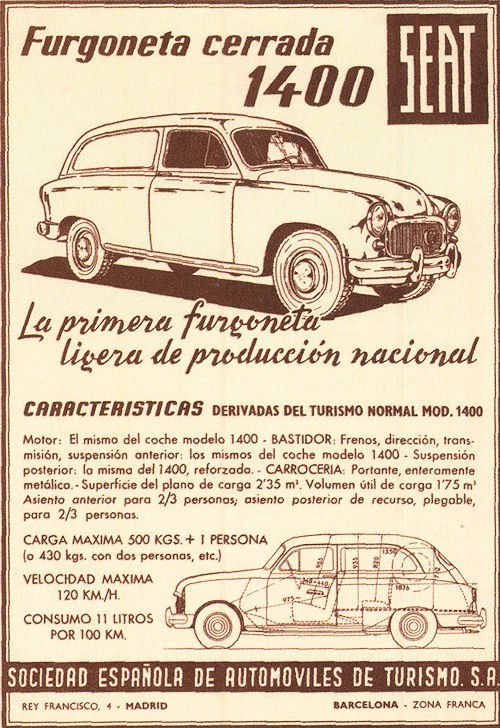 In november 1953 introduceerde het Spaanse Seat de 1400. Het eerste model van de in 1950 opgerichte Spaanse autofabrikant was een in licentie geproduceerde Fiat 1400. De Seat baarde- net als zijn inspiratiebron uit Italië- opzien door voor die tijd tamelijk moderne techniek. Hij zou in vier series worden geproduceerd door Seat, dat de auto in de Zona Franca fabriek in Barcelona bouwde. De fabriek werd in 1953 geopend, en op 13 november van dat jaar rolde de eerste Seat 1400 daar van de band.