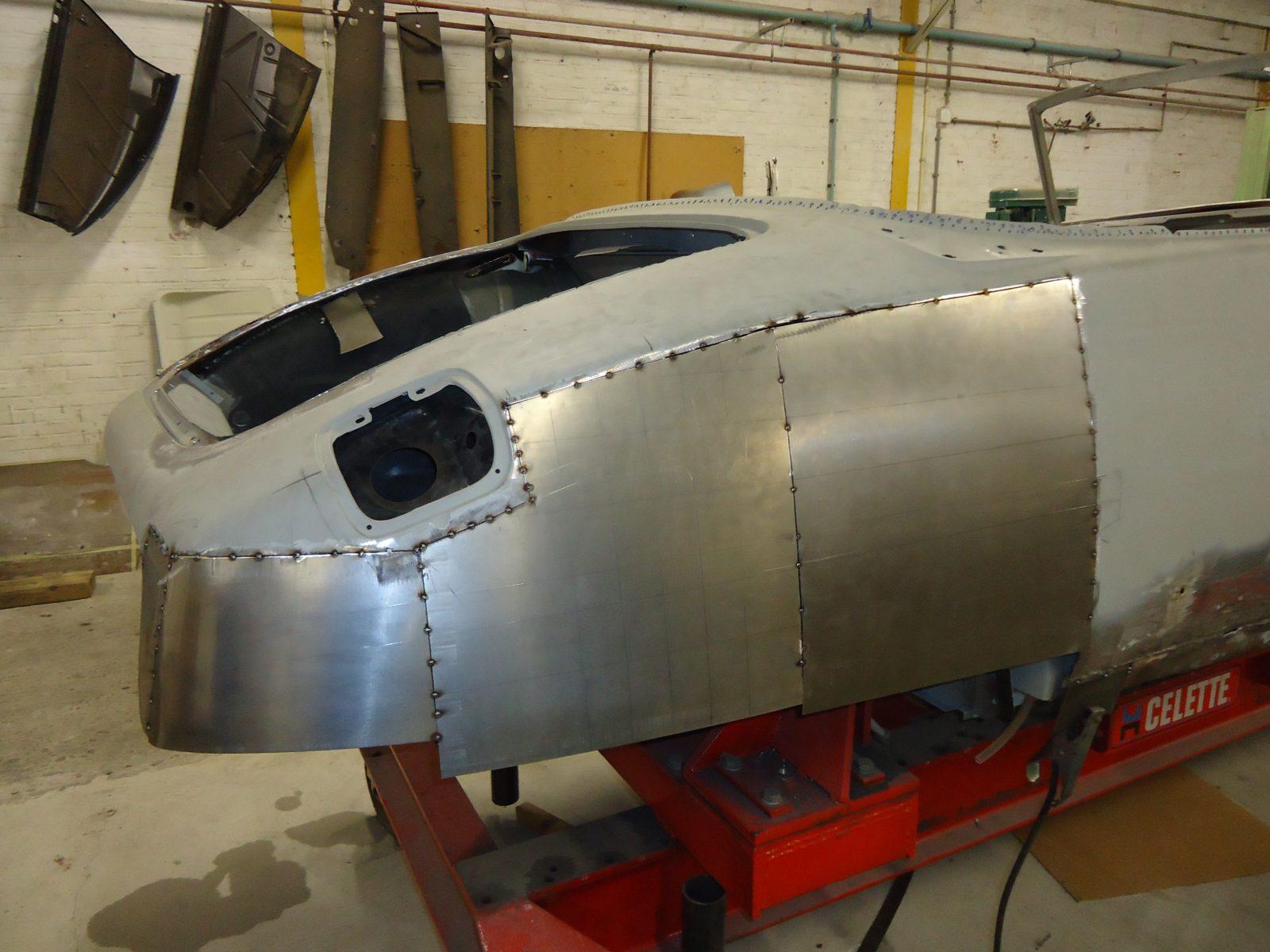 Uiteindelijk bleef de neus van de DS gespaard. De rest werd herschapen. En dat ging alleen maar omdat Cyril Sars en zijn team een Celettebank en alle plaatwerkersvaardigheden in huis hebben. En dat herbouwen werd nog een ambachtelijker klus dat de bouw van een Chapron ooit was. Want er werd heel wat plaat omgezet in plaatwerk. En dat gold in het bijzonder voor de achterkant.
