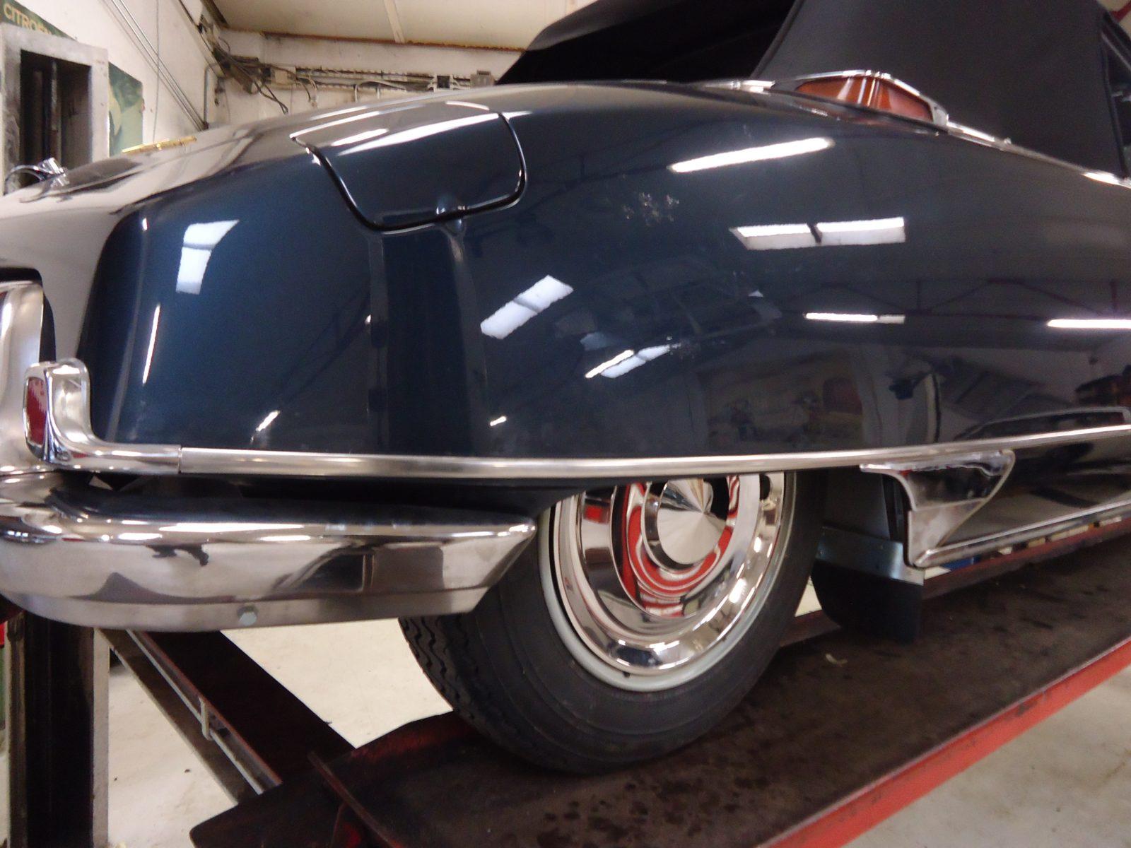 De eerste DSsen hadden smalle banden en een slanke kontpartij. In de loop van de productie groeide de breedte van de Chaprons mee met de bandbreedte van de DSsen. En het zorgenkind op Cyrils Celettebank was er eentje van de ranke soort. De uitdaging was de hele kont op te bouwen zodat de behouden kofferdeksel perfect in zijn opening zou passen.