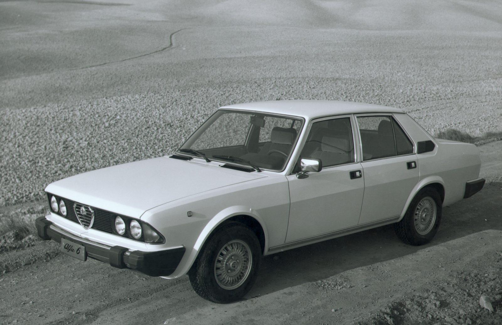 De eerste auto in dit overzicht is een onvervalste Italiaan: de Alfa 6. Zes cilinders, zes Dell’Orto carburateurs en een 2.5 liter motor. Dat waren de uitgangspunten die het topmodel onderhuids voedden. De Zes in de typeaanduiding heeft onbedoeld nog een betekenis. Deze niet transaxle Alfa kwam feitelijk zes jaar later dan gepland op de markt, het had alles te maken met de oliecrisis van 1973. De koper stond een technisch complexe wagen ter beschikking, die haarfijn balanceerde op de dunne scheidslijn tussen passie en ergernis, maar vooral een prachtig alternatief vormde voor diegenen die in deze klasse van de Duitse conventie wilden afstappen. In alles was de vier deurs Italiaan gracieus, zeker in de eerste serie met dubbele ronde koplampen en die unieke Dell’Orto configuratie. In 1983 bemoeide Bertone zich met de Alfa 6, de ronde koplampen verdwenen, en er kwam L-Jetronic voor de 2.5 en de nieuwe 2.0 motor. Verder bracht Alfa Romeo nog een dieselversie ten tonele. Puristen kiezen voor de eerste serie. Mét handbak. Die variant van de auto, die in twee series werd gebouwd en in 1986 werd opgevolgd door de 164, is het meest geliefd.