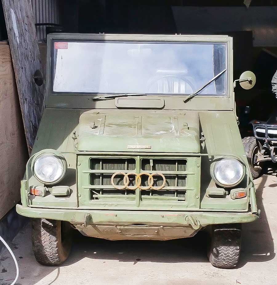 toen ik 15 was kreeg ik van m’n vader een Willys 1943 die zou eerst lekker opgepimt worden maar na verloop van de reparatie toch naar origineel gemaakt met een sabatical van 10 jaar reed ik er mee rond, ik werd getipt dat iemand nog zo,n zelfde Jeep had staan en deze wilde verkopen om z,n zakgeld aan te vullen, maar bij aankomst ontwaarde ik een Munga op het erf, ook een leuk karretje en toen toch maar gekocht, thuis gekomen belde ik een echte VW / Audi kenner met de mededeling dat ik een Audi Quattro cabriolet van 1964 te koop had ! zijn reactie was die bestaan niet ! oke maar het logo van Audi zijn toch 4 cirkels ja dat staat overal op echt 4 wiel aangedreven en een kap die er af kan ??? hoe kan dat nou ik kom zaterdag kijken en toen hij die zaterdag uitgelachen was heeft hij hem gekocht en jaren lol mee gehad en misschien nog wel