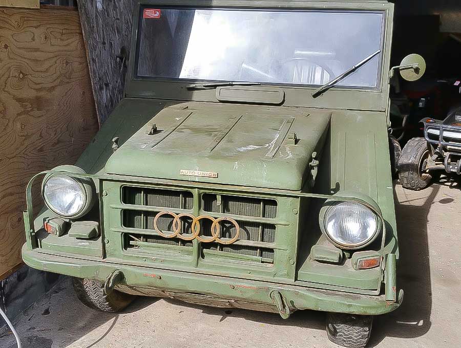 In een klein buurtschap aan de rand van het IJsselmeer werd hij in een boerderij gevonden, dit bijzondere karretje dat je zelden ziet rondrijden. Een DKW Munga uit 1964. De geniale eenvoudige en robuuste constructie zullen vele dienstplichtige militairen nog kennen uit de jaren 60. Over de naam DKW werden grappen gemaakt, zoals de positieve omschrijving: Das Kleine Wunder. In Duitse dienst was het wat minder aangenaam: Das Krankenhaus Wartet.