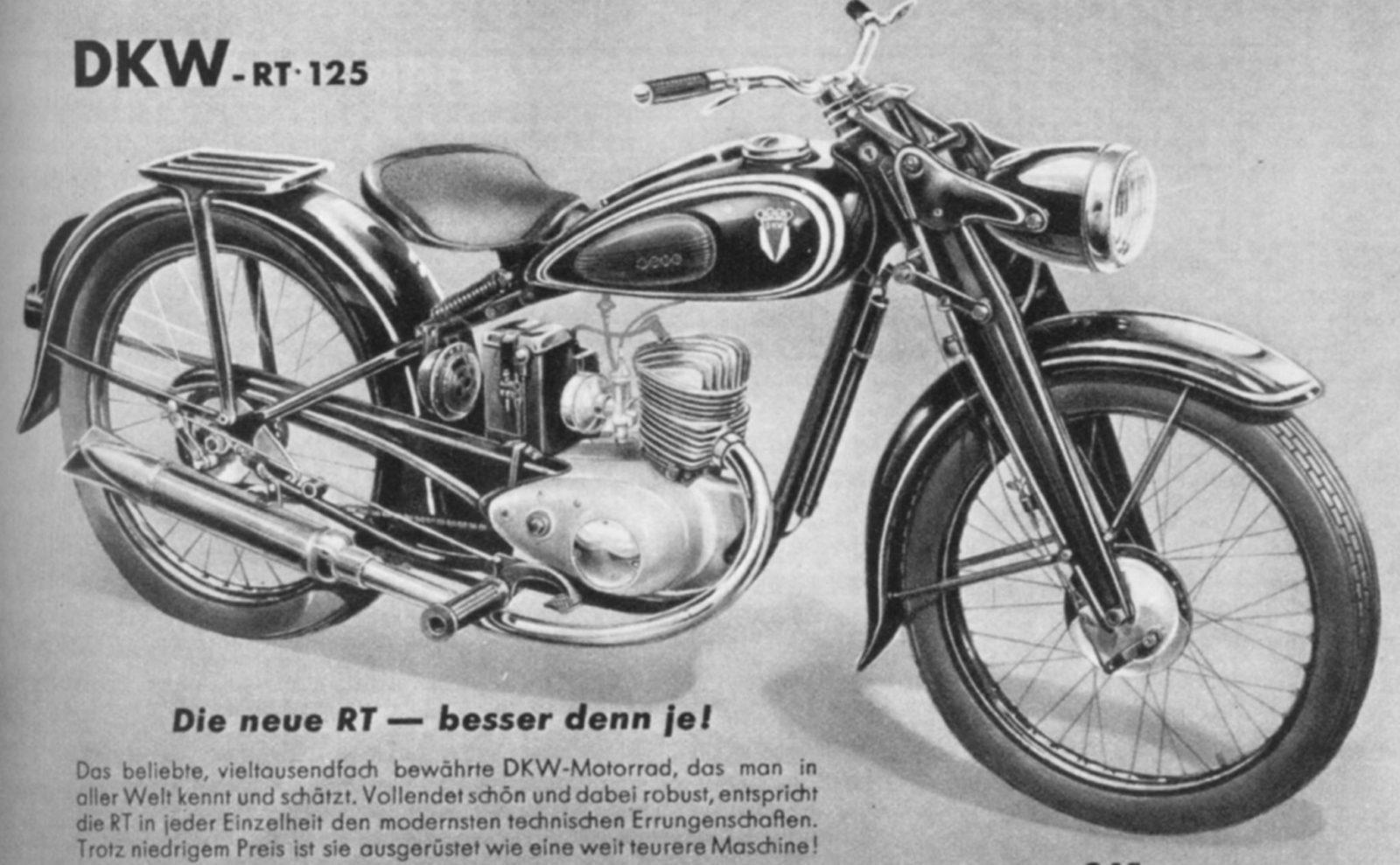 Hoewel DKW na de tweede wereldoorlog als merk ophield te bestaan werden er met DKW racers tot diep in de jaren vijftig nog wedstrijdsuccessen gescoord. Dat gebeurde met racers van voor de oorlog en zelfbouw projecten op basis van DKW onderdelen. In 1949 werd Auto Union opnieuw opgericht, maar nu in West Duitsland. En uit Audi City Ingolstadt kwamen er ook weer DKW motorfietsen. Dat waren natuurlijk eerst exacte clones van de voooorlogse DKW modellen. Er werden ook weer wedstrijdmotoren gemaakt en ook de oude gewoonte van het winnen van wedstrijden werd weer dapper opgepakt.