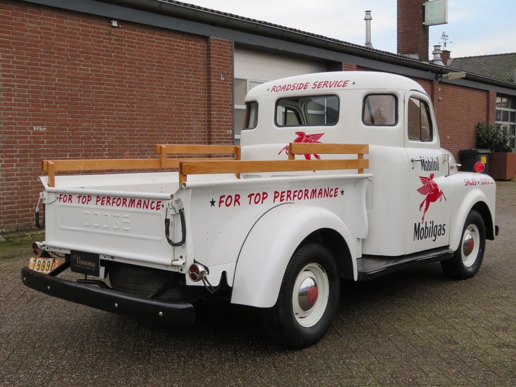 Dodge deed al goede zaken tijdens WOI en in de volgende oorlog ging het ook niet fout. Toen de vrede weer was uitgebroken, pikte men de draad weer op. In de late jaren veertig, begin vijftig waren er weinig stijlveranderingen of mechanische verbeteringen. De insteek was dat de vooroorlogse modellen gewoon weer in productie kwamen. De vooroorlogse en de oorlogsmodellen dus. De Dodge trucks bewezen in de oorlog zo breed inzetbaar en sterk te zijn dat Dodge ze ook in de naoorlogse tijd ging produceren. Een burger uitvoering van de oud-strijders werd geïntroduceerd in 1946 onder de naam Power Wagon. Deze 99% op militaire trucks lijkende civiele Power Wagons werden in Amerika verkocht van 1946 tot 1968 (sommige werden zelfs geëxporteerd tot in de late jaren zeventig). De Power Wagon was een spartaans ding. Geen lust & luxe dus, maar basaal transport. En daarvoor was een zes in lijn ‘flat head’ een prima motor. Bij de civiele uitvoering van de Power Wagons was er uit uiterste decadentie in ieder geval nog de keus uit vier kleuren.