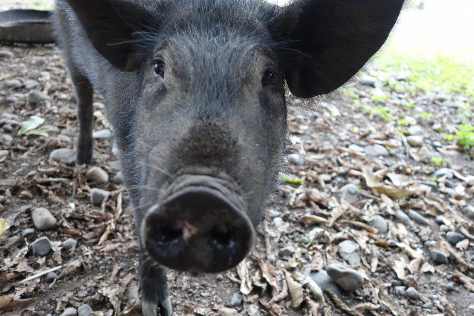 We vroegen of we met de onzinnige zwijnenjacht mochten helpen en kregen witte repen chocolade.