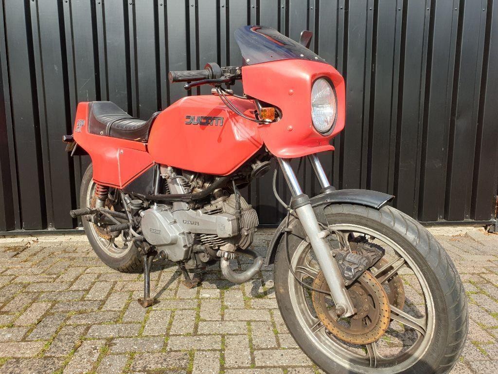 Een optisch nadeel. De styling was niet van het soort waarvan estheten steil achterover sloegen. De grote zijpanelen onttrokken de achterste cilinder vrijwel uit het zicht waardoor de Duc smoelde als een motorfiets met een liggende eenclinder. Vanaf de zijkant gezien was het geheel ook wel erg vol en plaatwerkachtig. Heel in het kort zou je het zo kunnen zeggen: Deze kleine Ducati was een lelijk ding.