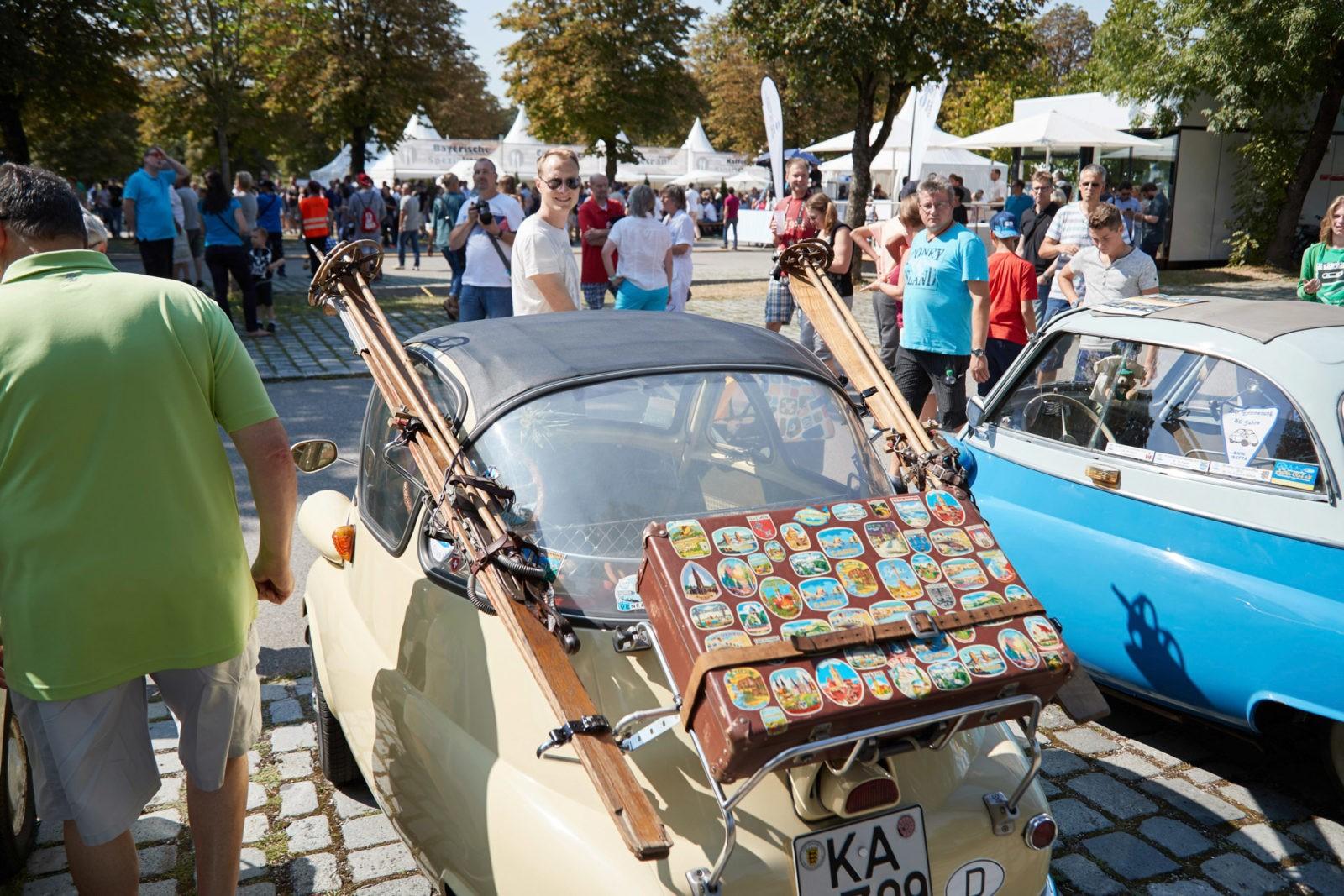 Op het BMW Festival dat voor de gelegenheid werd georganiseerd, waren namelijk zo’n 1.000 klassieke BMW’s aanwezig. Ze waren van leden van BMW-clubs uit meer dan 30 landen. Voor clubs uit Italië, Oostenrijk of Zwitserland valt de afstand natuurlijk wel mee, maar er waren ook BMW-liefhebbers die een grotere afstand af hadden gelegd, bijvoorbeeld uit de Verenigde Staten. Er waren ook clubs uit minder voor de hand liggende landen, zoals de BMW Club Moldova. Andrei Canter vertelt: ‘We zijn hier gewoon naar toe komen rijden met onze klassiekers. In mijn geval is dat een 520 van de eerste generatie, een E12. Hij was Taiga grün en dat is ‘ie nog steeds, alleen het overspuiten had misschien wat beter gekund. Daarom heb ik mijn auto vandaag laten beschilderen door kinderen, als herinnering aan deze dag. Voor mij had er nog veel meer verf op gemogen, maar ja, ik moet ook door de ramen kunnen kijken natuurlijk.”