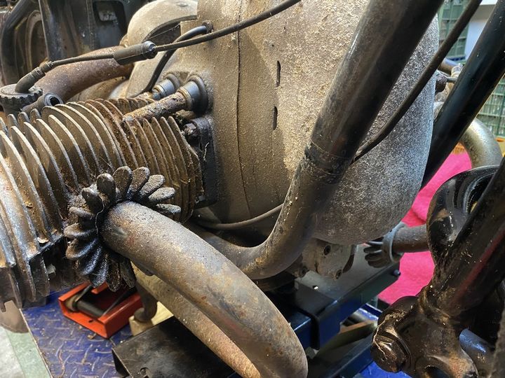 En een hel nest Condors. En natuurlijk heeft hij ook Russische zijspannen gehad en net zo’n aartslelijke Chang Jiang als ik nu heb staan. Maar doorgaans legt Ben de lat net wat hoger dan ik. Zo heeft hij nu een BMW R69S. Gewoon. Van onder een zeiltje vandaan. Ben wist al vijf jaar dat de motor daar stond. Maar het duurde even voor de motor hem gegund werd. Het feit dat wat ooit Beiers trots en de snelste seriemotor ter wereld was een jaar of vijftien+ onder dat zeiltje had geslapen bleek wat later toch wel een dingetje.