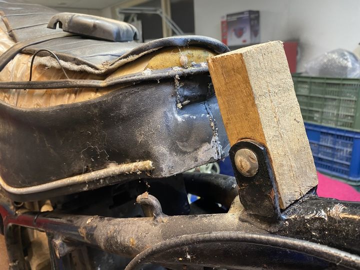 Eenmaal thuis aangekomen bleek al snel hoeveel natuur en tijd stuk kunnen maken. De tijd dat de boxer de trots van de straat was, was blijkbaar al een poosje geleden. Want we kunnen ons geen echte BMW-liefhebber voorstellen die een blok hout gebruiken wil als tanksteun. En het was zelfs geen eikenhout!