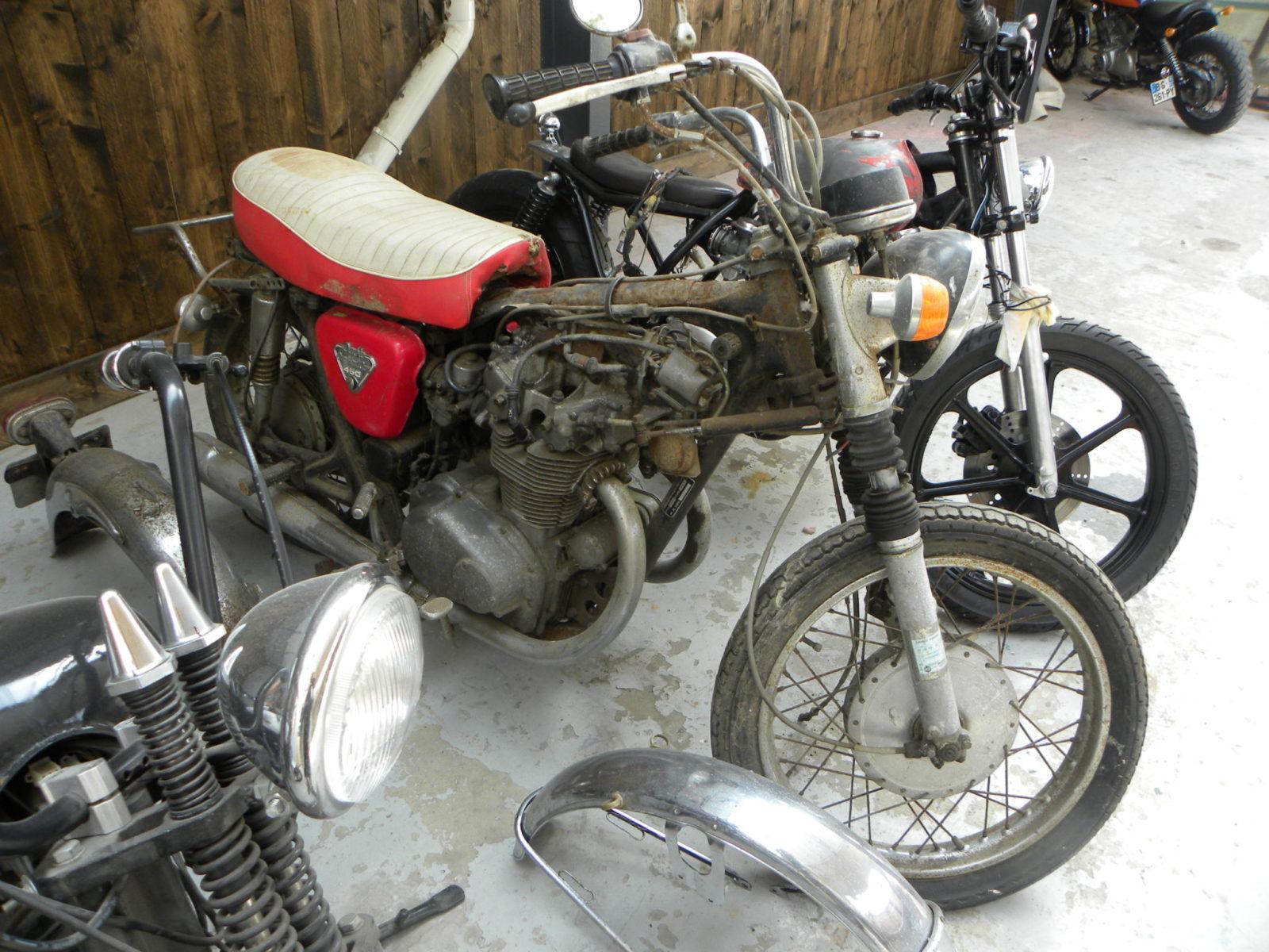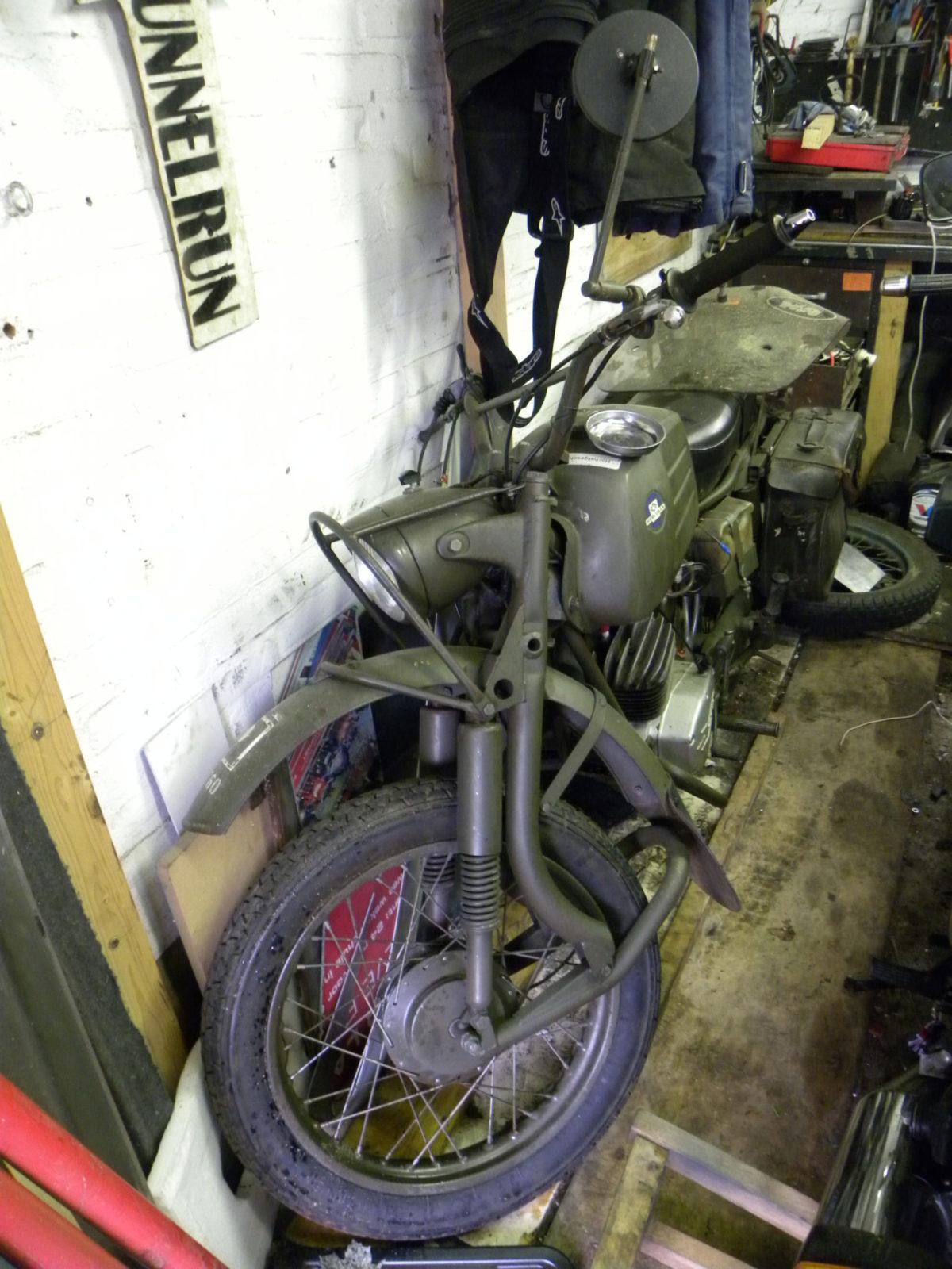 De oude geweermaker moest even op gang geholpen worden, maar toen herinnerde hij zich weer dat we met hem over oude motorfietsen hadden gepraat. Hij sommeerde een intussen gearriveerde, somber kijkende dertiger de schuur leeg te halen omdat ‘deze heren de oude motorfiets wilden zien’. We mochten mee helpen ruimen. Na twee uur graven en sjouwen kwam er een achterlicht tevoorschijn. De motor bleek een aangeslagen maar complete Benelli ‘kracht ei’ te zijn. Die Italiaan werd voor kleingeld geadopteerd, samen met een wat doorleefd aanhangertje dat ook op het erf slingerde. We reden een kilometer of vier terug om te kunnen pinnen, deden een glas wijn met onze nieuwe vrienden en we vonden dat we weer een prima weekend hadden gehad.