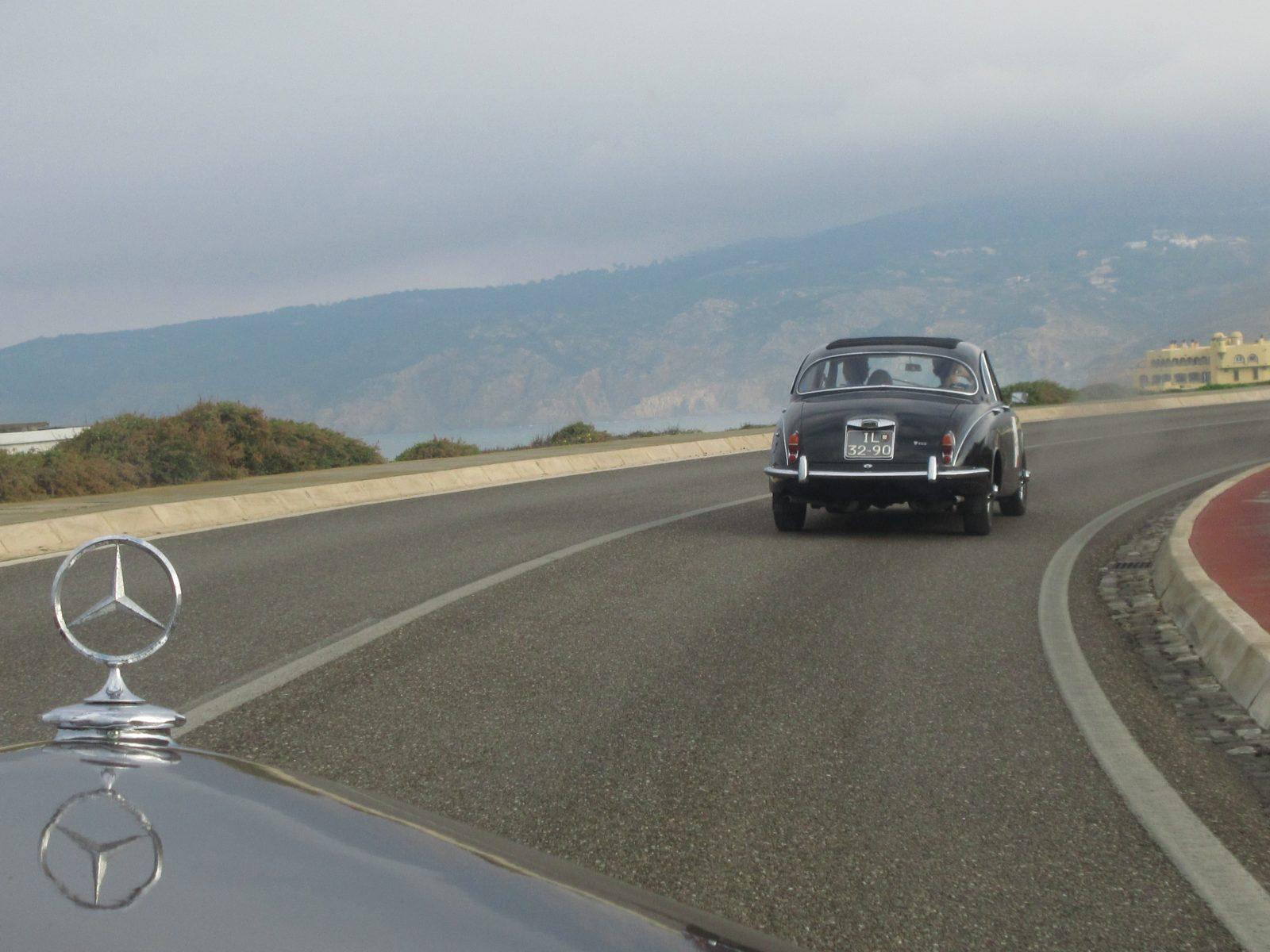 Het diner in restaurant Maria Pia is voortreffelijk, en het Pestana Cidadela Cascais, is de basis waar het aangenaam toeven is. En ontbijten. Ik weet niet wat ik zie als ik het restaurant binnenloop. Het Atlantische uitzocht is fantastisch, en ik verheug mij op het ontbijt en op wat vandaag verder komen gaat. Het weer is heerlijk, en wij gaan met een Mercedes Benz 220 (W187), een Daimler V8 250 en een Peugeot 404 van Top Emotions op pad. Door de bergen, langs de kust, dat wordt adembenemend. Wij rijden naar Praia de Guincho, Cabo da Roca (het meest westelijke punt van het Europees continent) en het op de rotsen gebouwde Azenhas do Mar. De route is wonder-, wonderschoon.