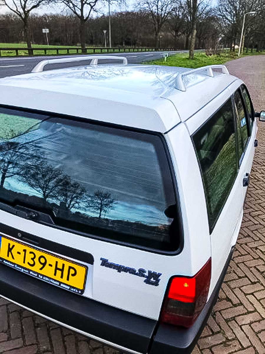 Ondanks zijn knappe prestaties heeft de Fiat Tempra het in Nederland niet echt geweldig gedaan. Je ziet hem dan ook niet zoveel en nauwelijks als youngtimer. John Lee kocht de auto in Duitsland vlak over de grens bij Venlo en door de speciale 4×4 uitvoering en natuurlijk als SW (station) is het voor hem “ruimte met pit”.