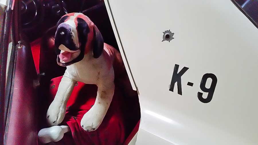 De sheriff is in Amerika een openbaar bestuurder en politiehoofd van de lokale en regionale politie. Zijn Ford Custom is niet een officieel dienstvoertuig geweest, maar wel helemaal aangekleed als politiewagen. Goed herkenbaar aan zijn extra lampen en een fel geluid van de sirene waarin je direct de Amerikaanse politieauto herkent. De politiehelm, de stickers (Call 911), natuurlijk de boef achterin en de gevaarlijke K9 (hond) maakt de auto als showcar compleet.