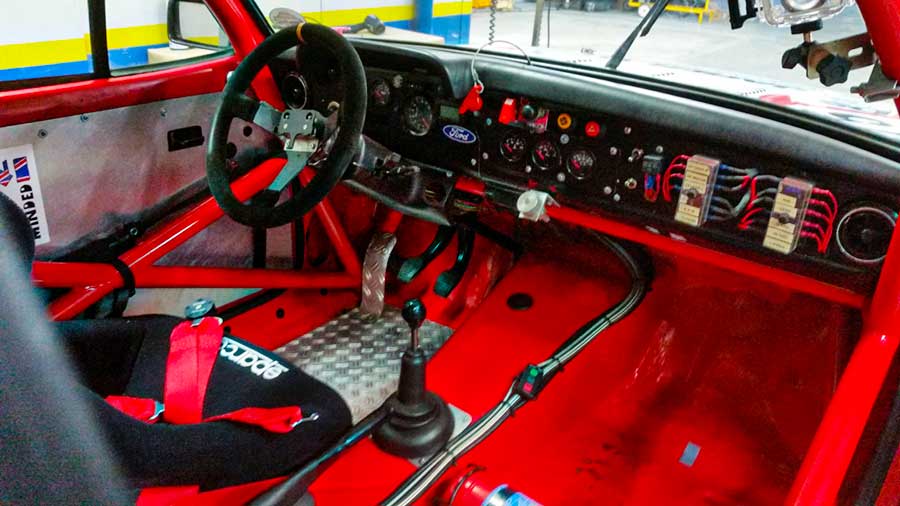 Zijn Ford heeft een oersterke krachtbron en de verdere uitrusting volgens de FIA voorschriften om deel te nemen aan historische races, zoals: Willwood remmen, onderstel volledig afstelbaar in hoeken, een achteras met slijpsper, verstelbare schokbrekers voor van Bilstein en achter van AVO. De banden zijn van Michelin, de motor Pinto 2,0 BV 180+ PK. 2×48 DCOE/SP Carburateurs en een geheel op maat gemaakt uitlaatsysteem. De versnellingsbak is een racebak met rechte vertandingen. De racekenners herkennen dit pareltje van techniek.