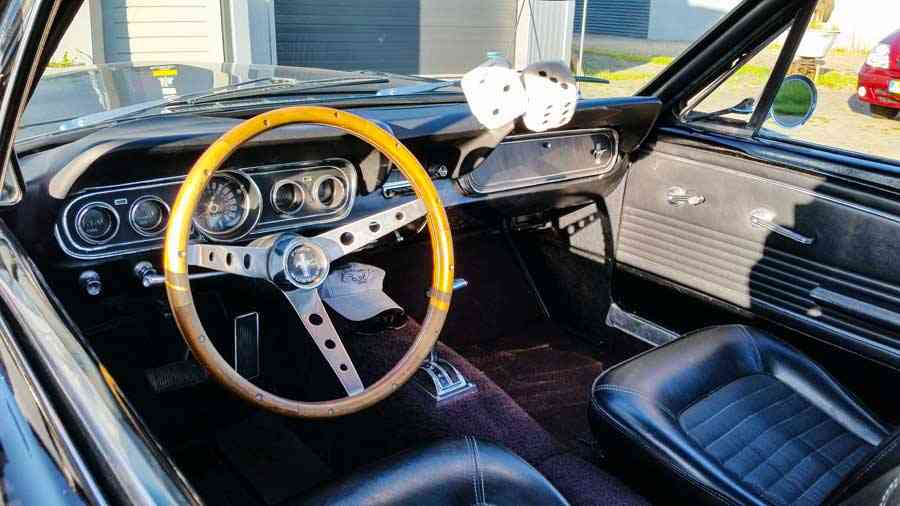 De Mustang heeft een 289 motor. Dat is niet meer het originele blok met matching numbers, maar wel het type dat er origineel in hoort. En natuurlijk is de Mustang uitgerust met een automatische versnellingsbak. De Ford Mustang heeft nog altijd een grote groep aanhangers, bij elke rit wordt de zwarte coupé bewonderd.