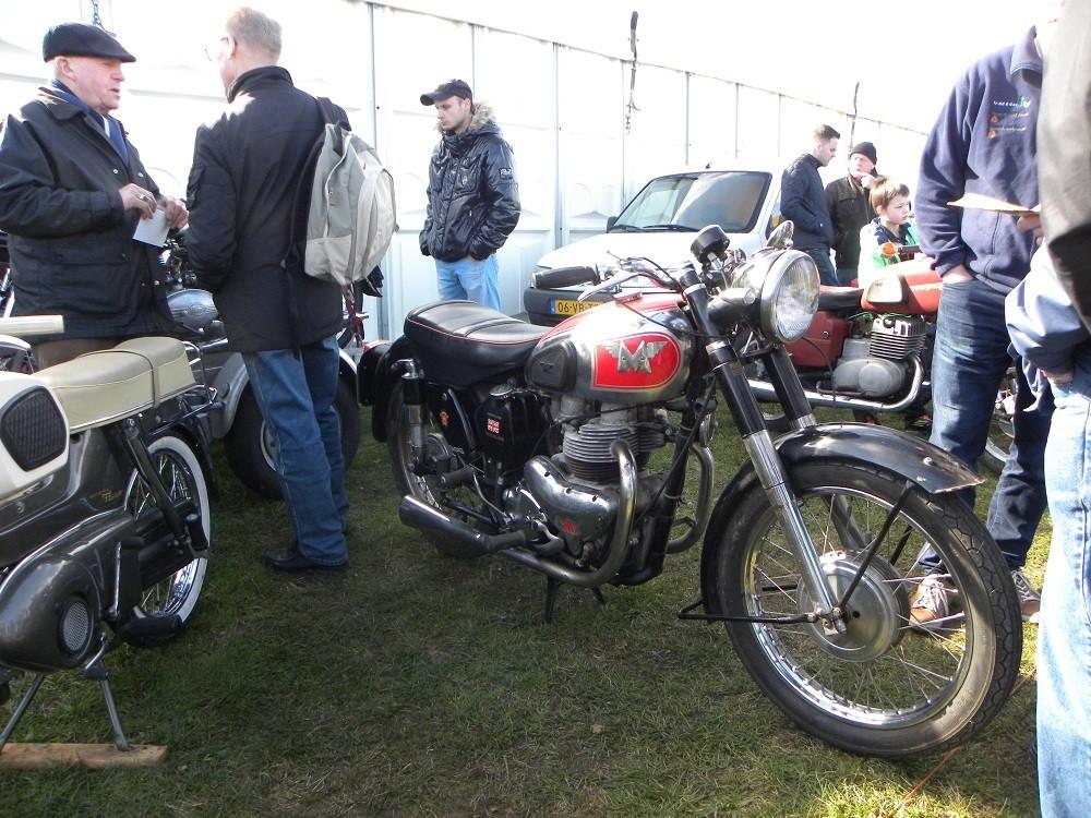 Het feit dat de beurs nog wat dichter naar de grens met Duitsland is geschoven heeft geresulteerd in meer Duits publiek en meer Duitse standhouders. Hardenberg is er nu bijna interntionaal mee geworden. Het aanbod verschilt vaak per keer in Hardenberg. Ooit troffen we op een beurs vijf Honda CB 450 K1’s. Onlangs leek het als of Suzuki T500’s gewoon nog heel gangbare dingen waren. Ditmaal was er een vertederend aantal Britse twins in overuigende ‘as found’ toestand. Niet in ‘als gevonden onder een hooiberg’, maar als ‘na een jaar of veertig gevonden in een droge schuur’. Een paar plaatmooie BSA’s stonden met een vraagprijs van 16D euro duidelijk van een andere klasse te zijn. Er stonden ook leuke Ducs en wat MV 350’s. Voor oudere BMW’s was er alles te krijgen en liefhebbers van Japanners uit de jaren tachtig konden er ook heel goed terecht.