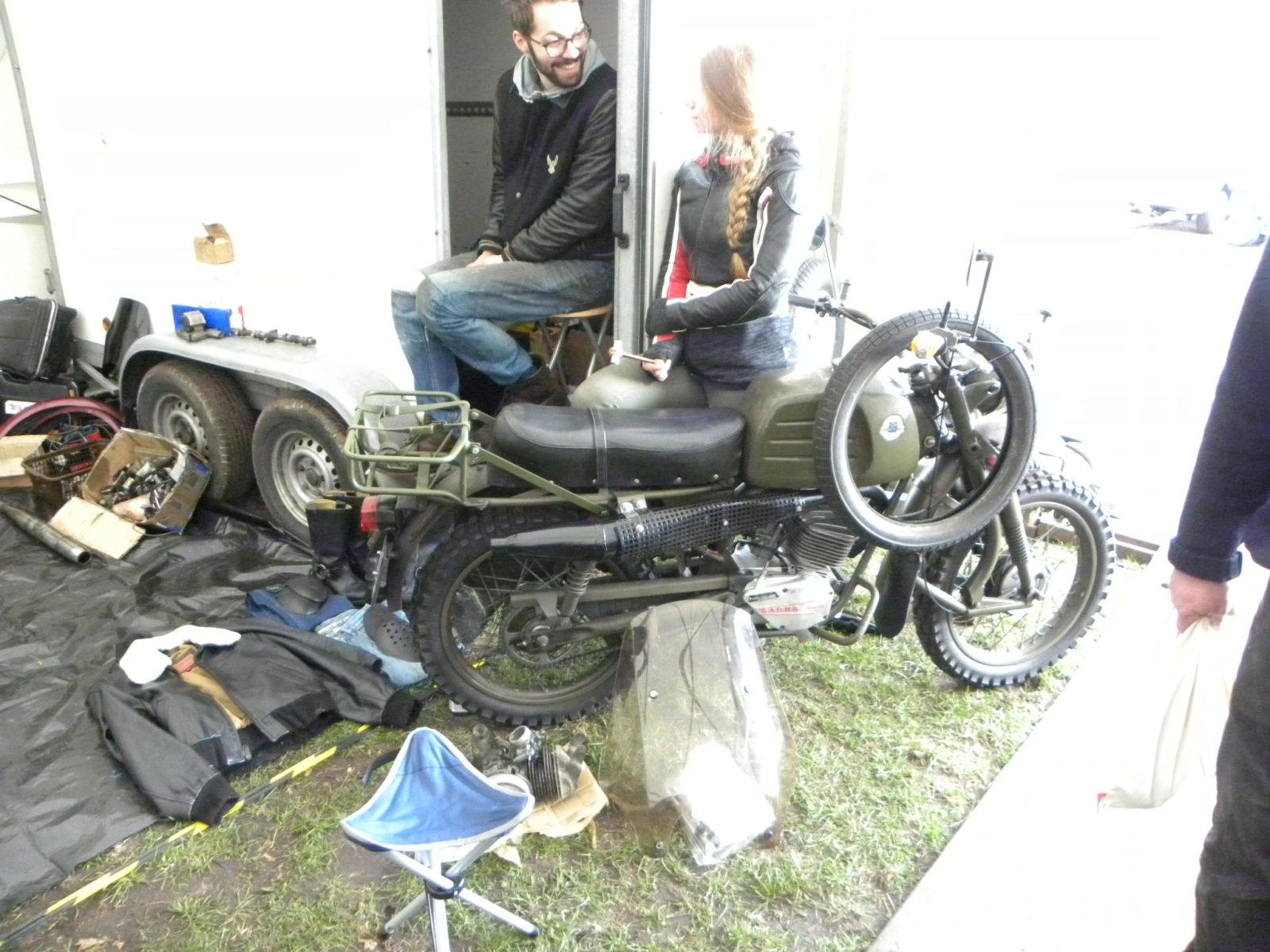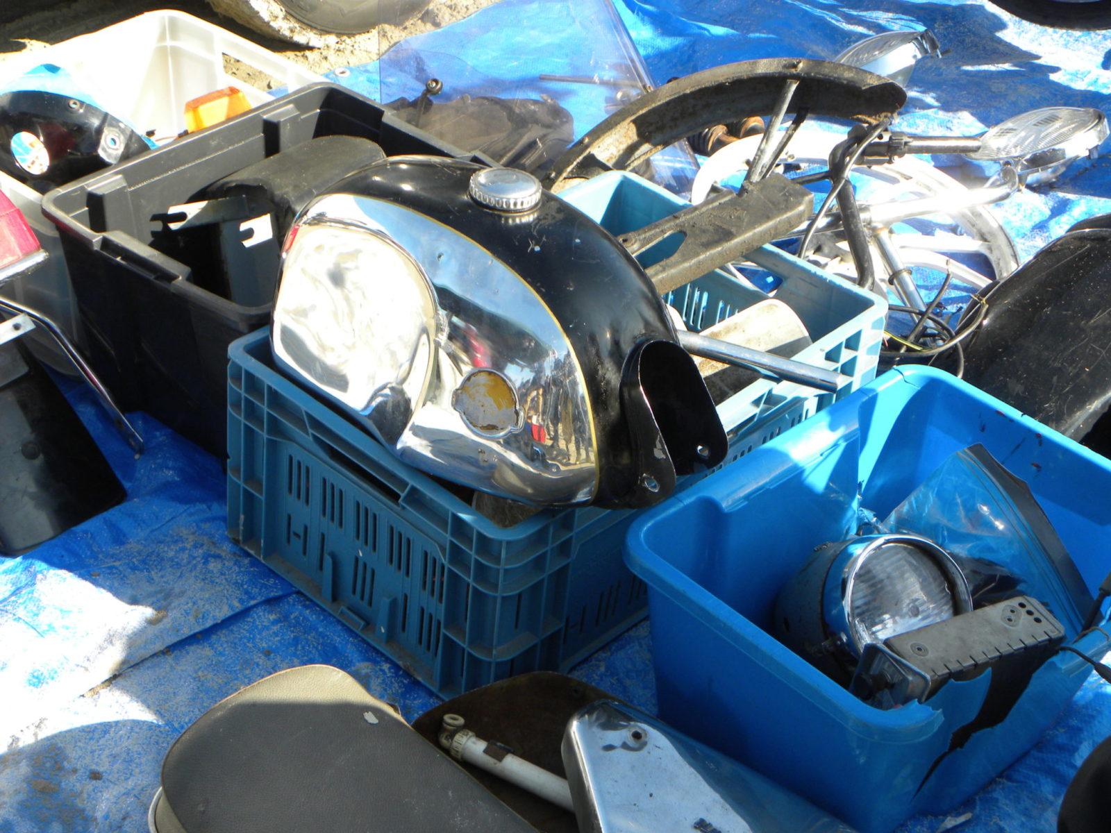 Deze keer was er erg veel 50-100 cc brommerspul en waren er verrassend veel ‘koperen’ onderdelen, spul voor echte veteranenfietsen. En de ‘nieuwe’ locatie was blijkbaar al goed ingeburgerd. Het was druk, druk en gezellig. De standhouders, waar nog steeds echte particulieren onder zitten, sjouwen altijd zoveel mee dat je, ook wanneer je het idee hebt dat er wel erg veel ligt spul staat, altijd wel aan je trekken komt. Erg grappig is dat je in Hardenberg dingen ziet aangeboden die ‘in het westen’ aanzienlijk duurder te koop worden aangeboden. Maar ja, als je dan als een boekhouder de drie+ uur reistijd en de kilometers aan houdt, dan ligt dat toch wat genuanceerder. En pakt gewoon de meeste winst wanneer je er uit de buurt komt.