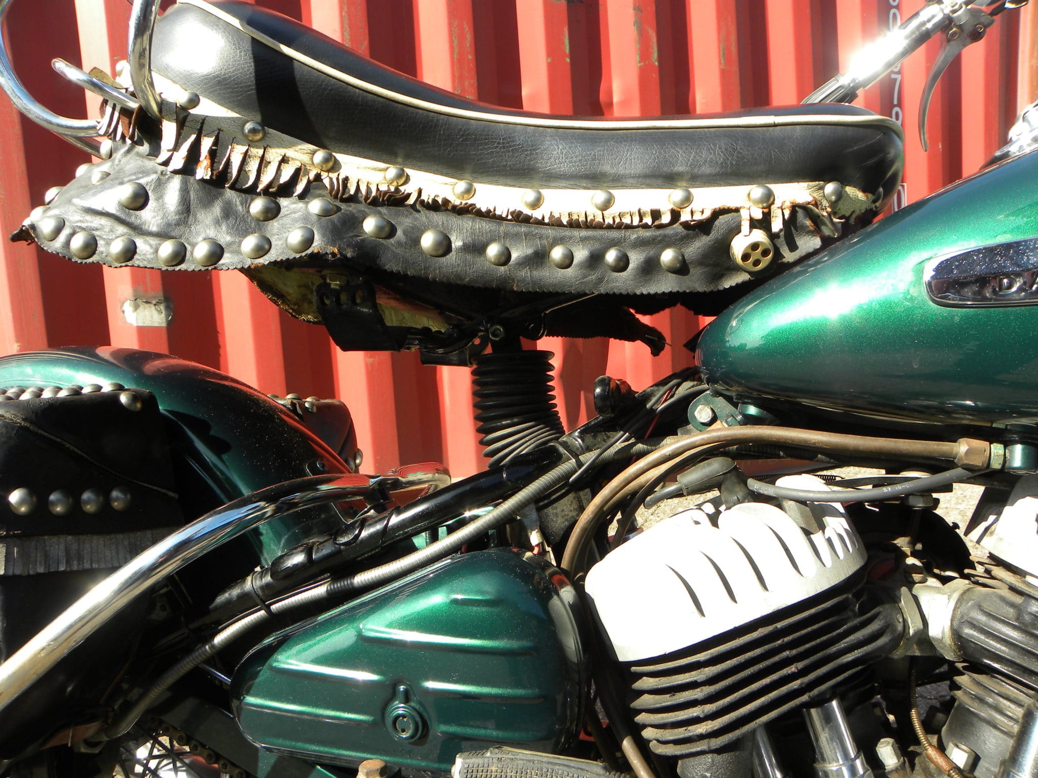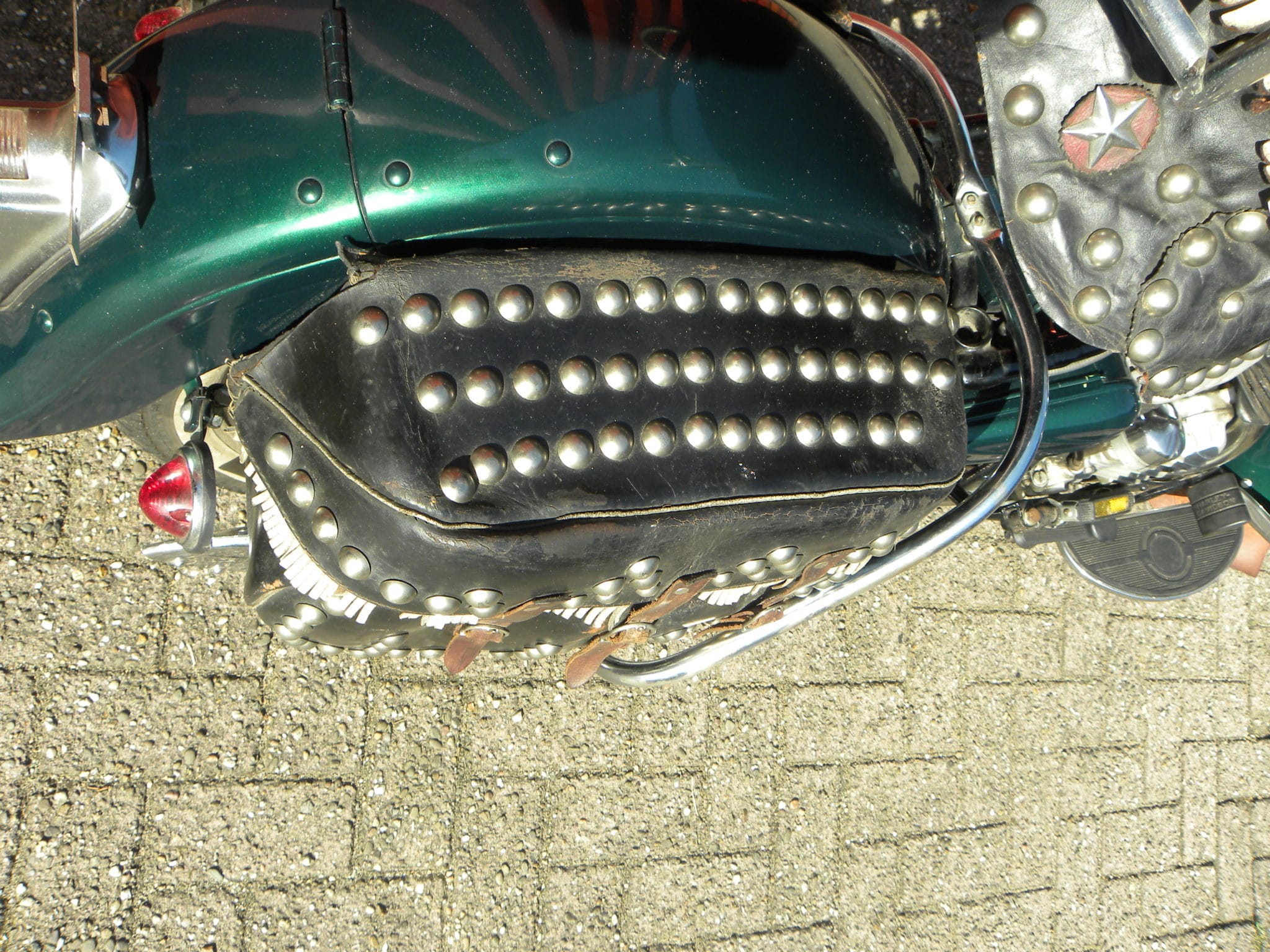 Ze investeerden naar hun smaak en mogelijkheden in hun zijkleppers. En met het groene fotomodel wordt meer dan duidelijk hoe je je Harley moest aanpakken op een manier waarop alle meisjes uit de straat/het dorp smachtend voor je vielen. Waar we ons fotomodel nu huiverend als een heel vreemd gebakje zien, daar moet iemand ooit heel blij en trots zijn geweest.