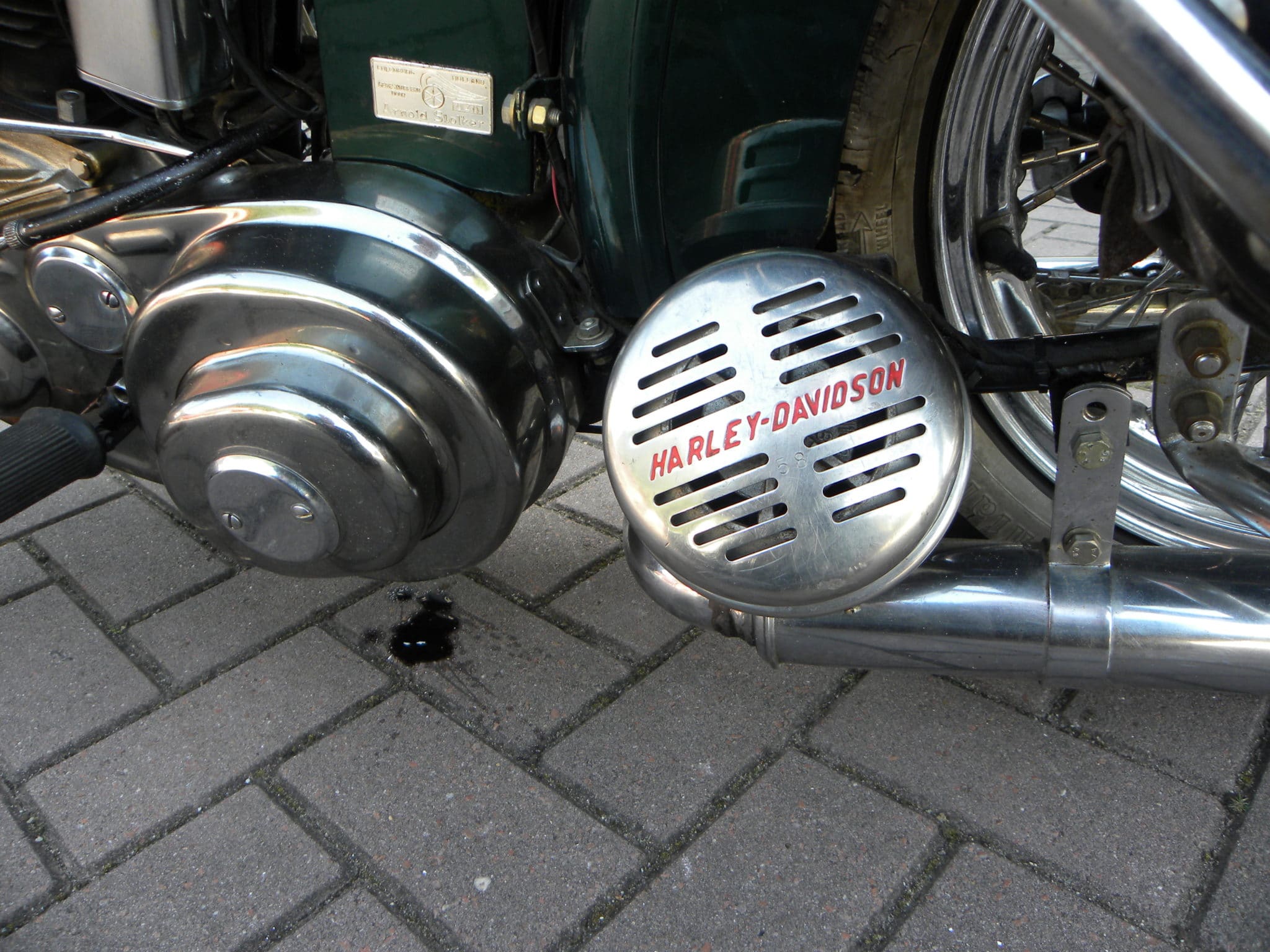 Die groene, maar dan in blauw, was de allereerste motorfiets waar ik ooit op reed. Die ervaring vergeet ik nooit. Vooral de remmerij was een schokkende ervaring. Voor een bocht moest ik remmen. Mijn eerste bocht op een motorfiets ooit. Ik kwam er snel achter dat de voorrem er slechts voor de vorm op zat. Uit schrik meteen op de achterrem gaan staan leverde acuut een rokend achterwiel op, hi! Enfin, de bocht werd als door een gladiator geslecht. Een hele ervaring als je een Zündapp met hoogst illegaal grote cilinderinhoud komt met een grote Kreidlernaaf voorin. Dat remde egwel fatsoenlijk! De Harley bevindt zich, naar ik weet, nog steeds in eigendom van dezelfde eigenaar. Nu al sinds ruim 40 jaar!!