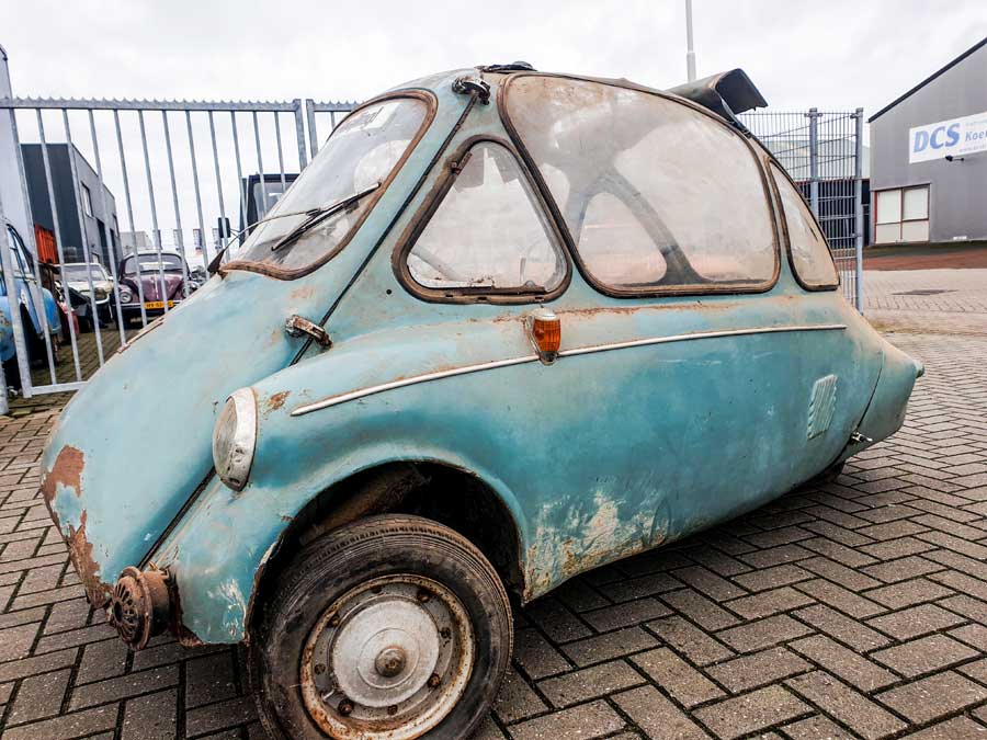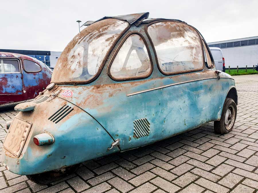 Bij het schatgraven troffen zij wel een zeer bijzonder duo. In de jaren 50 werd er veel gestoeid met driewielers waarvan een aantal zeer succesvol waren in de tijd van een groeiende welvaart. Er was een grote behoefte aan eenvoudige en goedkope wagentjes en vele constructeurs slaagden erin de wagentjes op de markt te zetten. Wij kennen allemaal de Messerschmitt, Heinkel en ook de BMW Isetta, maar de kleinere fabrikanten hadden meer moeite om grote aantallen te produceren.