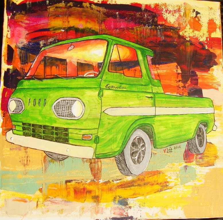 Onze interesse werd getrokken door een stel schilderijtjes – ze zijn iets van dertig bij dertig – van klassiekers. En zo kwamen we op het spoor van Marc Veenhuis uit Zelhem.
