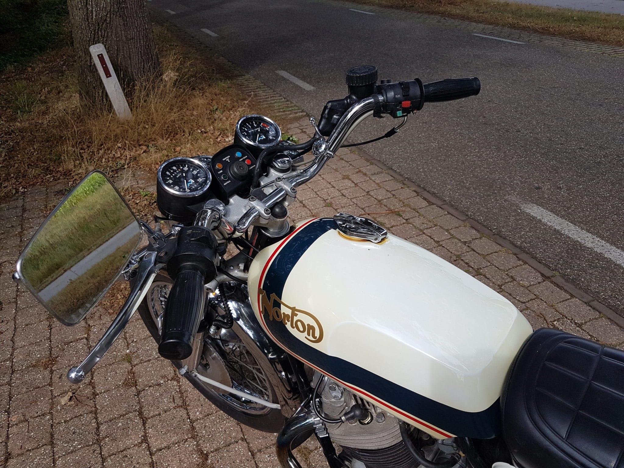 De Norton op de foto’s is uit de collectie van Rob Remmerswaal uit Wezup. De 850 (met werkende startmotor!) dateert uit de tijd van net weer een vorig bedrijfsfaillissement van Norton.