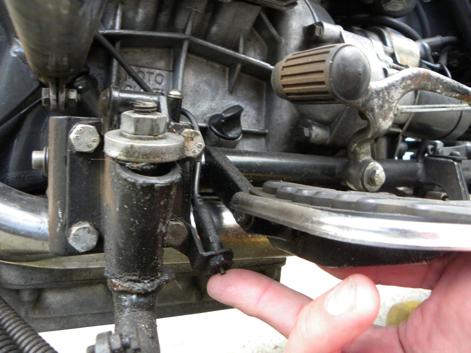 Dat befaamde WD 40 is overigens eerder een reinigings/ oplosmiddel dan een puur smeermiddel. Dus zorg nadat het spul zijn wonderwerk heeft gedaan alsnog voor een drupje olie. Maar voorlopig zijn we zo ver nog niet. We gaan kijken waarom de motor niet start. Zet de motor op de middenbok of steun hem -IN DE VERSNELLING – tegen een stevig object. Beweeg de zijstandaard vervolgens in en uit. Kijk of er wat beweegt in de massa viezigheid die zich vaak ter hoogte van het scharnier ophoudt. Dat is de woon en verblijfplaats van de jiffy schakelaar die de ontsteking kort sluit zodat er niet met een uitgestoken jiffy weg gereden kan worden.