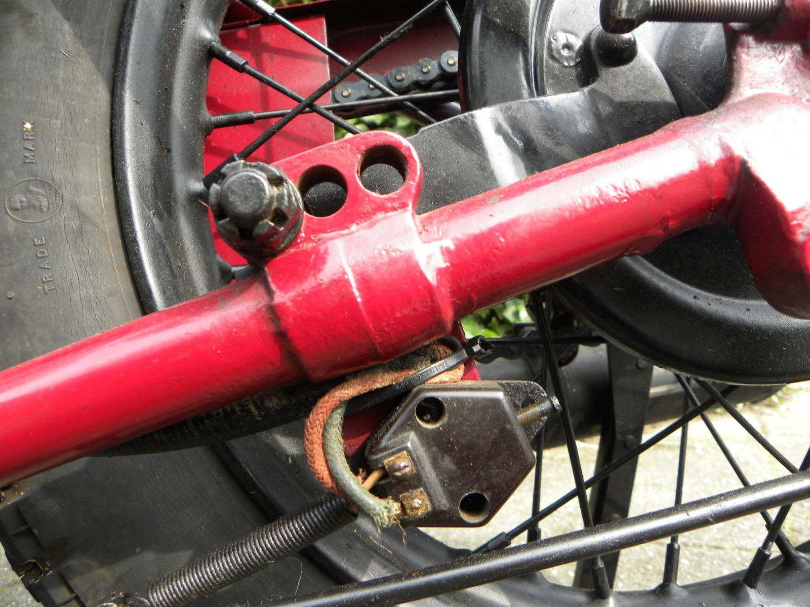 Probeer de bewegende stift van de schakelaar wat extra te bewegen door hem met de punt van een schroevendraaier of punttangetje heen en weer te bewegen. Doorgaans werkt dat op een gegeven moment. En als dat niet werkt? Dan is het tijd voor plan B. Als de schakelaar defect is, moeten die twee draadjes door verbonden worden. Dat kan door de einden met een aanstekervlam of zakmes van de bedrading te ontdoen en de koperdraden in elkaar te draaien. Dat is een road repair 1.0. Beter zijn een extra stukje draad en een paar ‘AMP’ klemstekertjes of een kroonsteentje. En die had je immers toch al aan boord? Op die manier kan de schakelaar overbrugd worden. De motor doet het weer. Maar kan ook prima rijden terwijl de zijstandaard nog fier uitsteekt. Dat is een nadeel. Dezelfde aanpak gaat trouwens op bij de zo belangrijke achterrem lichtschakelaar. Die woont doorgaans onder dezelfde barre omstandigheden en wordt tijdens een was- of poetsbeurt ook nogal eens vergeten.